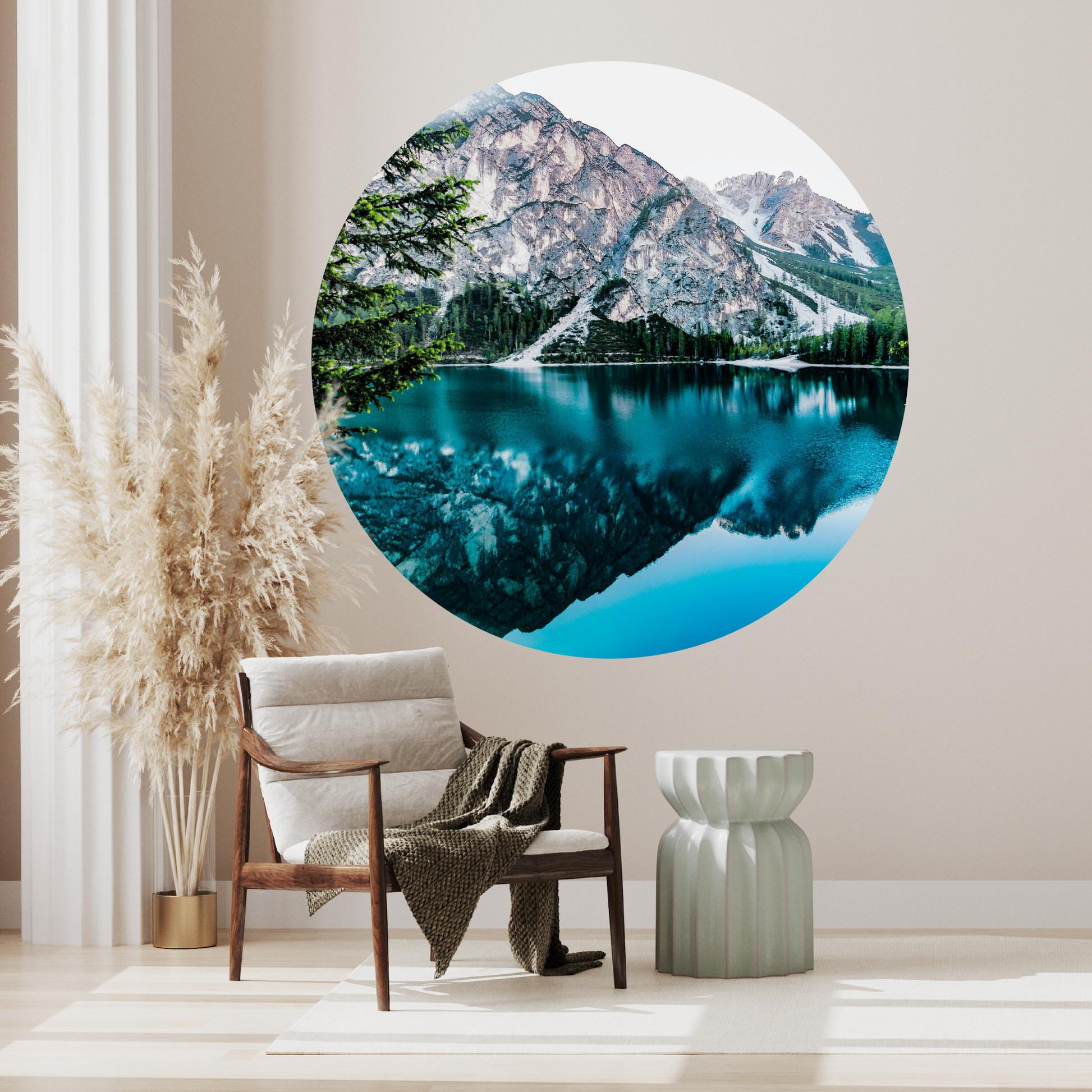 Round Wall Sticker – “Mountain Reflection"