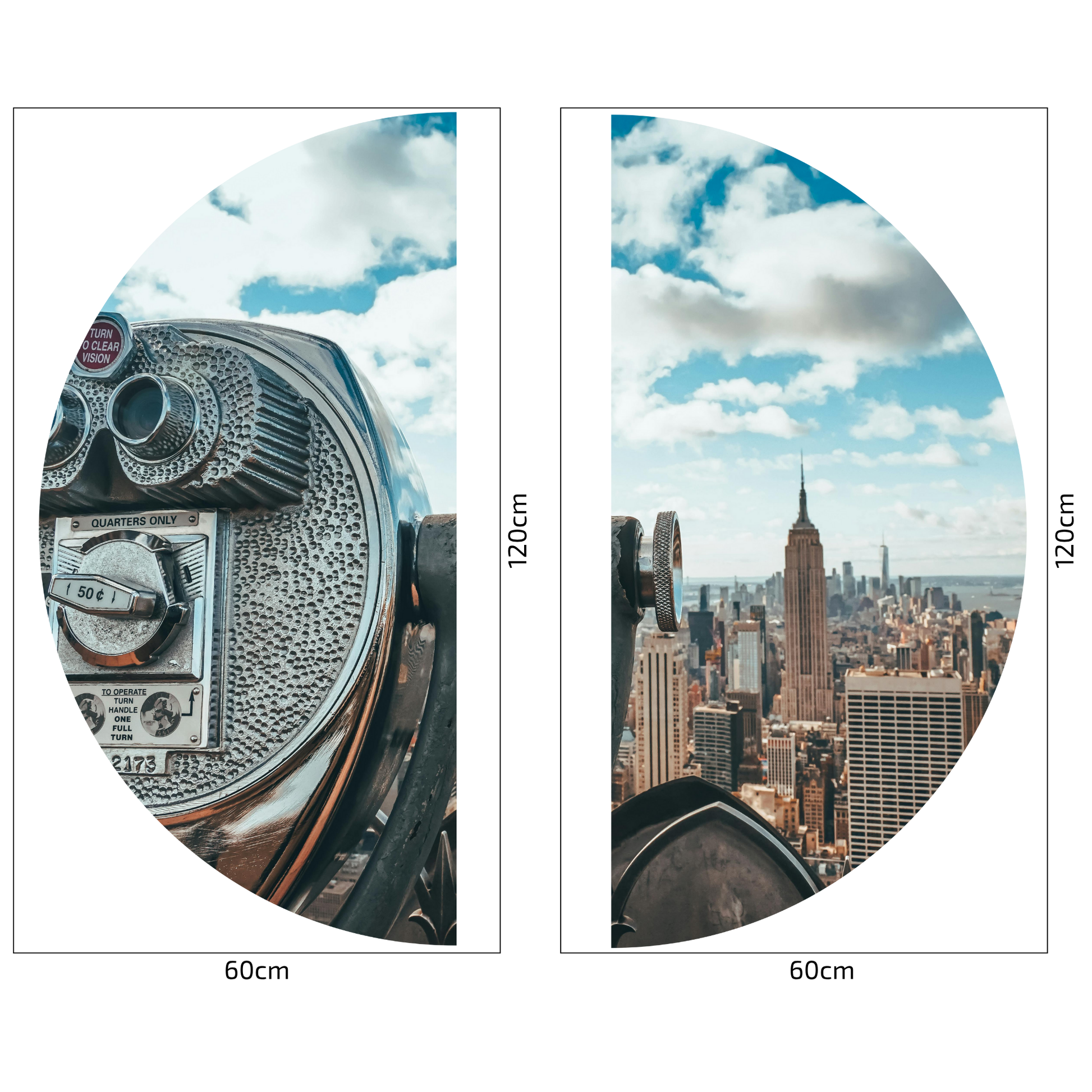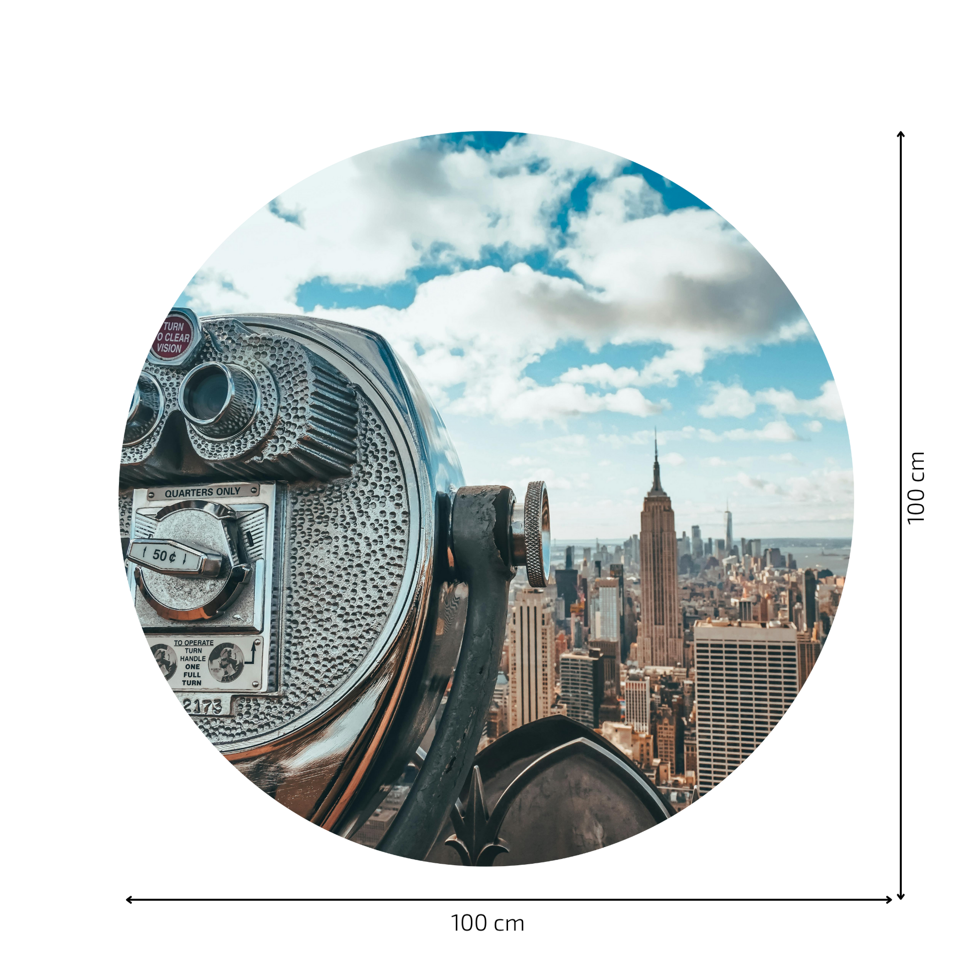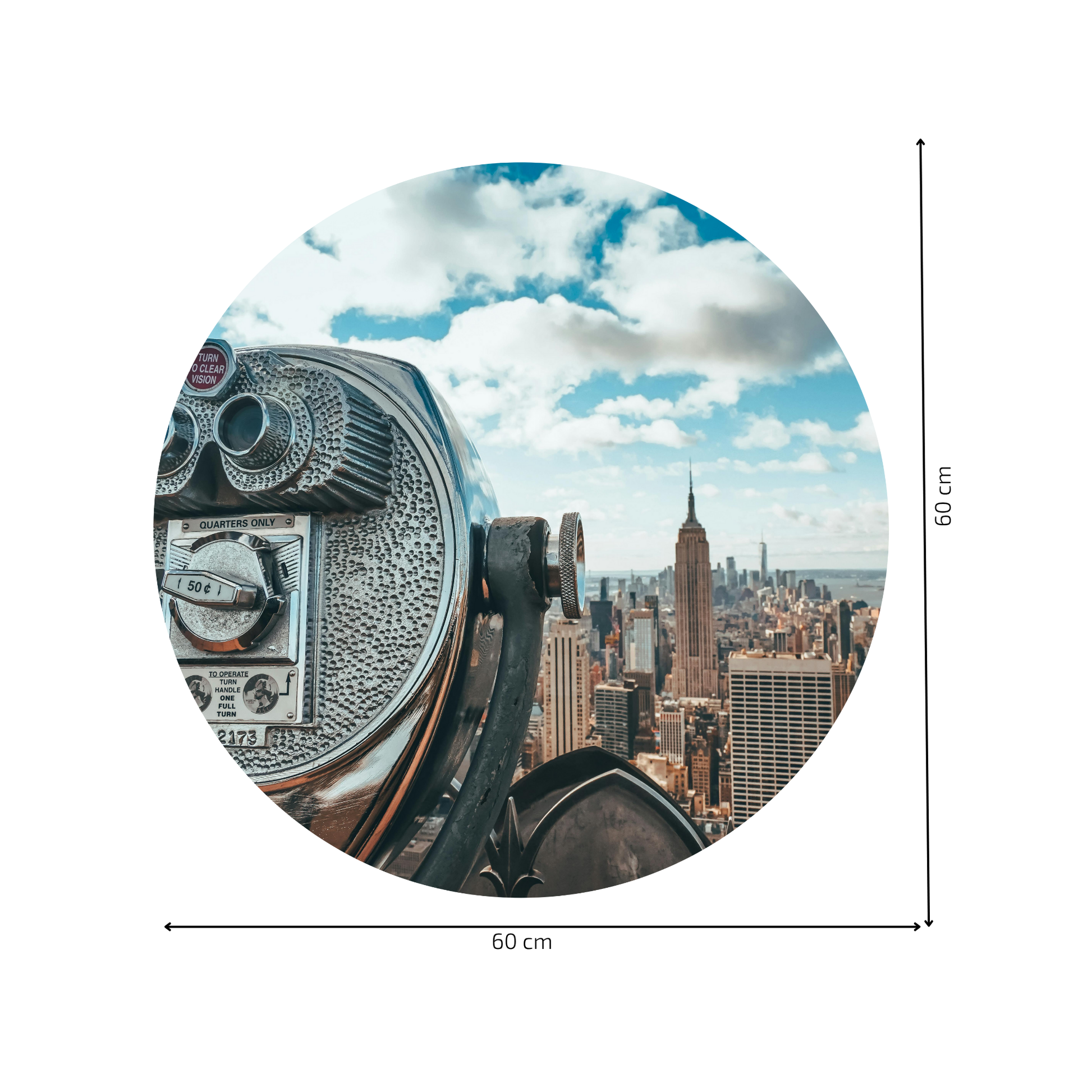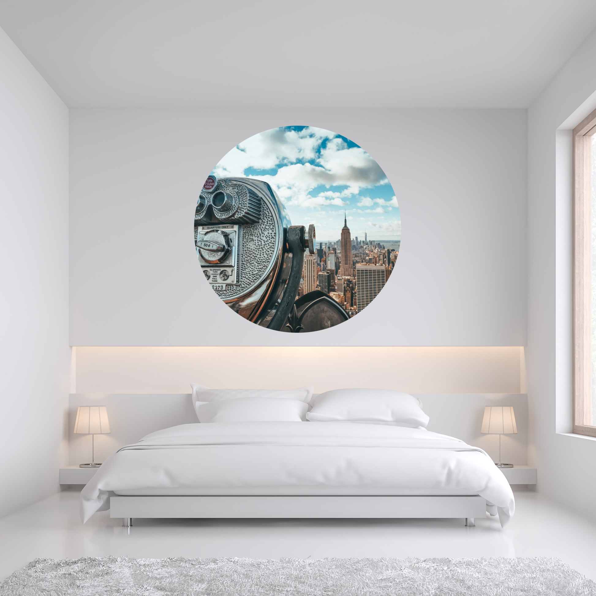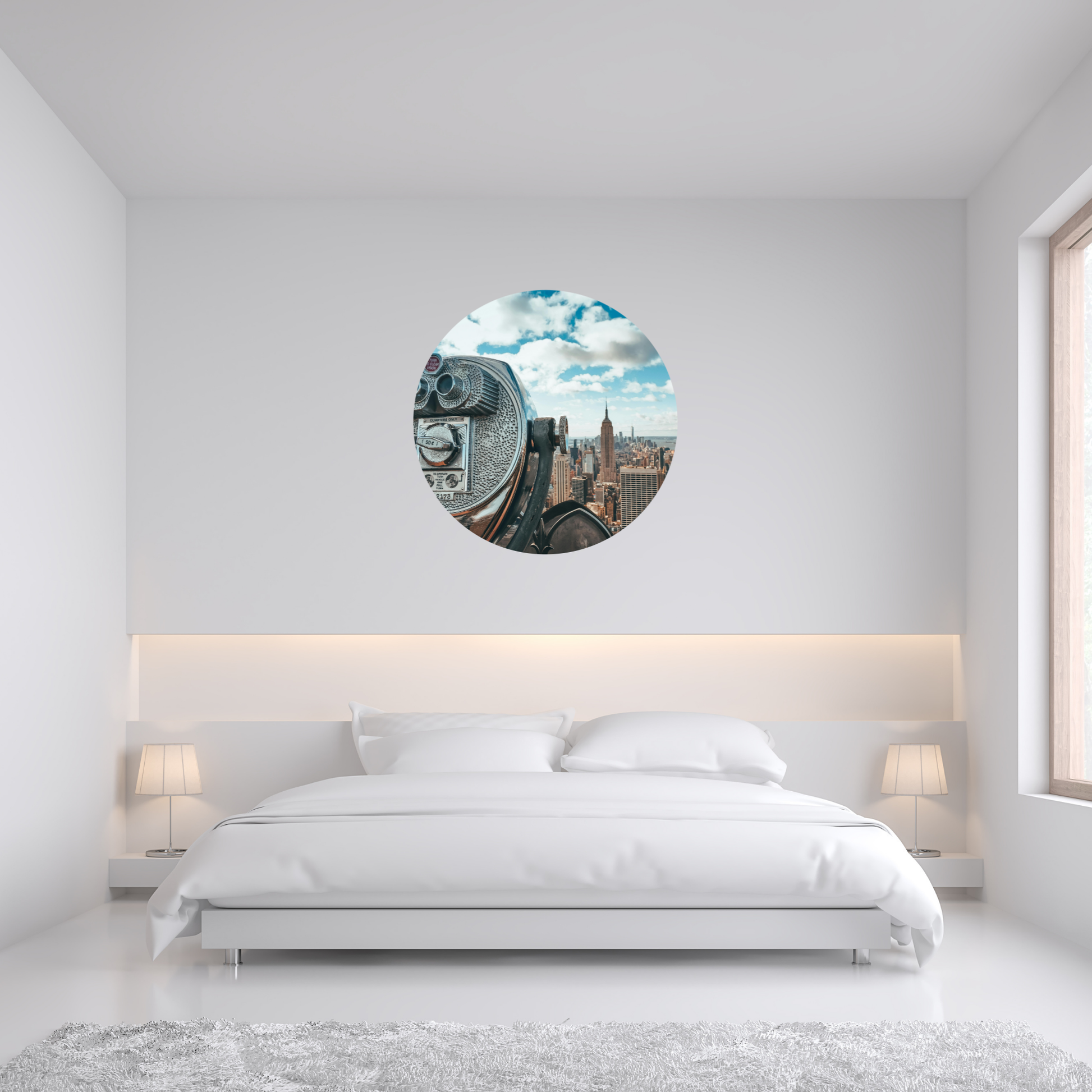 Round Wall Sticker “New York 2” captures the moment when you're standing high above the city and everything feels possible. The view through the observation telescope towards the Manhattan skyline will remind you every day of the power of dreams and determination. 🔭🌆 This design is like a little piece of America right on your wall.