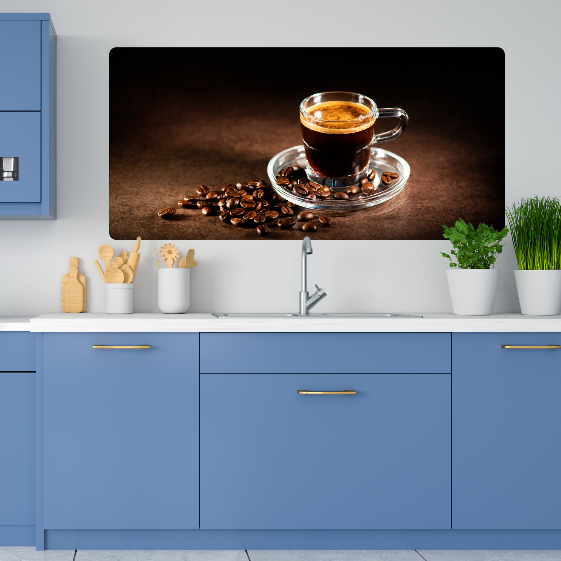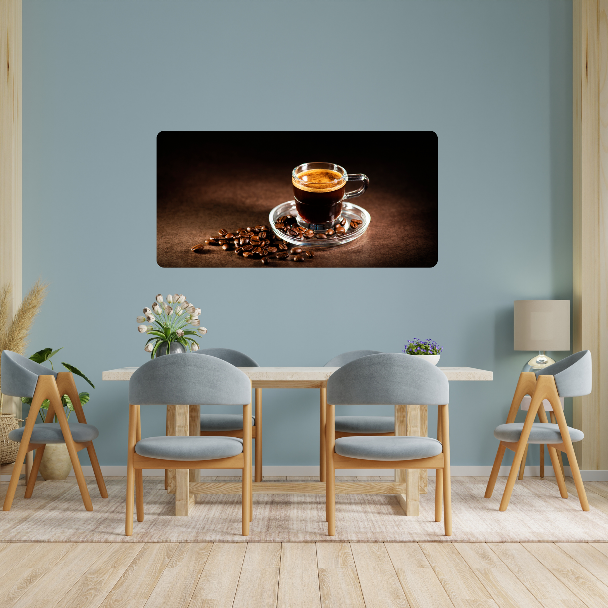 Start every day with the rich aroma of espresso captured in our Self-Adhesive Textile Painting – Coffee Cup. This elegant wall art features a steaming glass cup of freshly brewed coffee surrounded by roasted beans - a moment of calm, comfort, and pure indulgence.