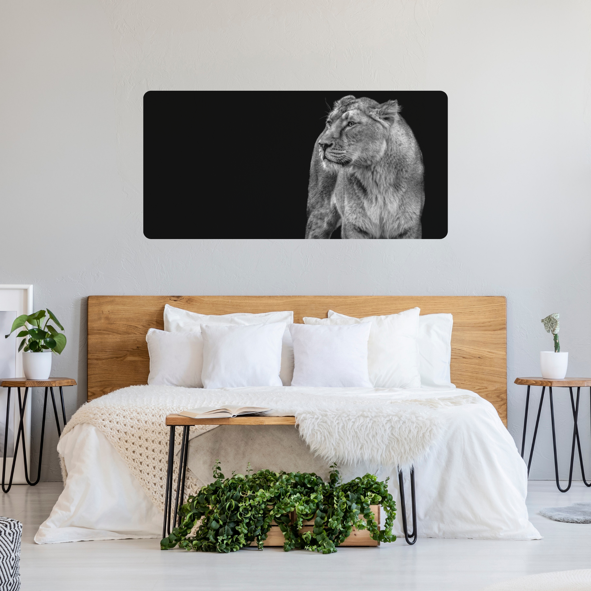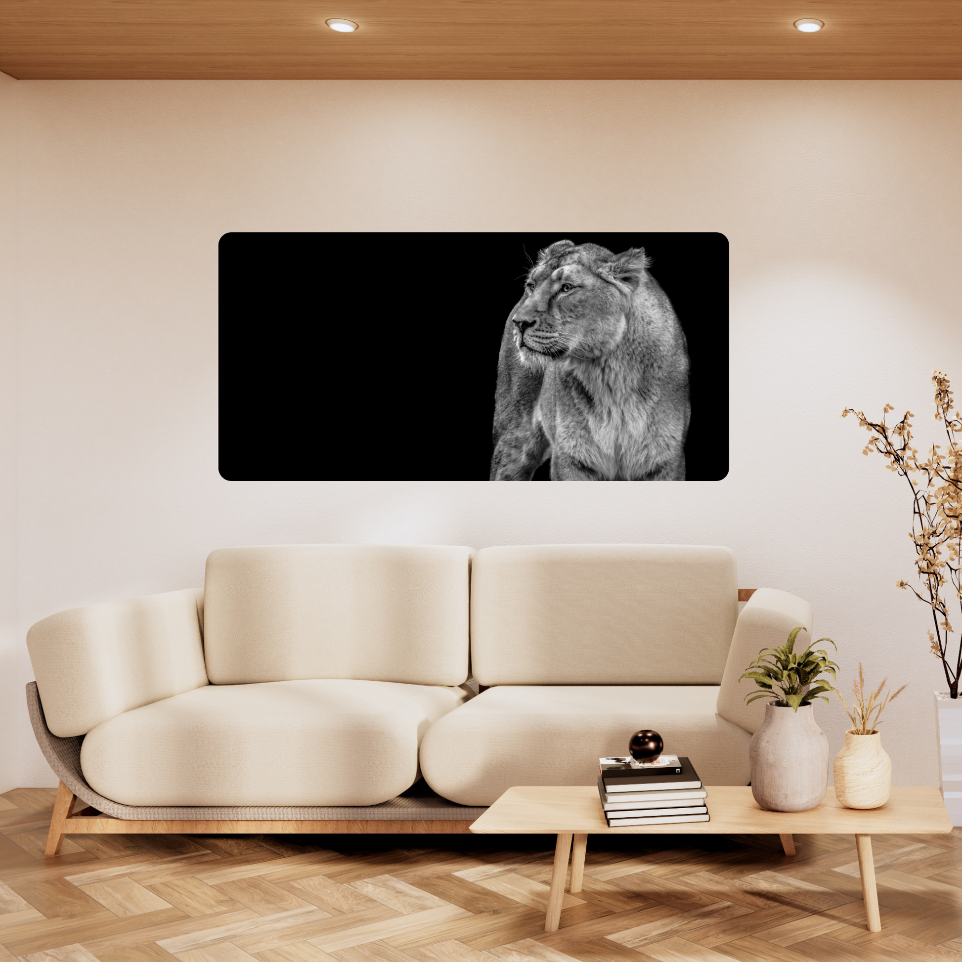 Add a touch of raw elegance and quiet strength to your space with our Self-Adhesive Textile Painting – Lioness. Captured in striking black and white, this powerful portrait embodies grace, courage, and the spirit of the wild.