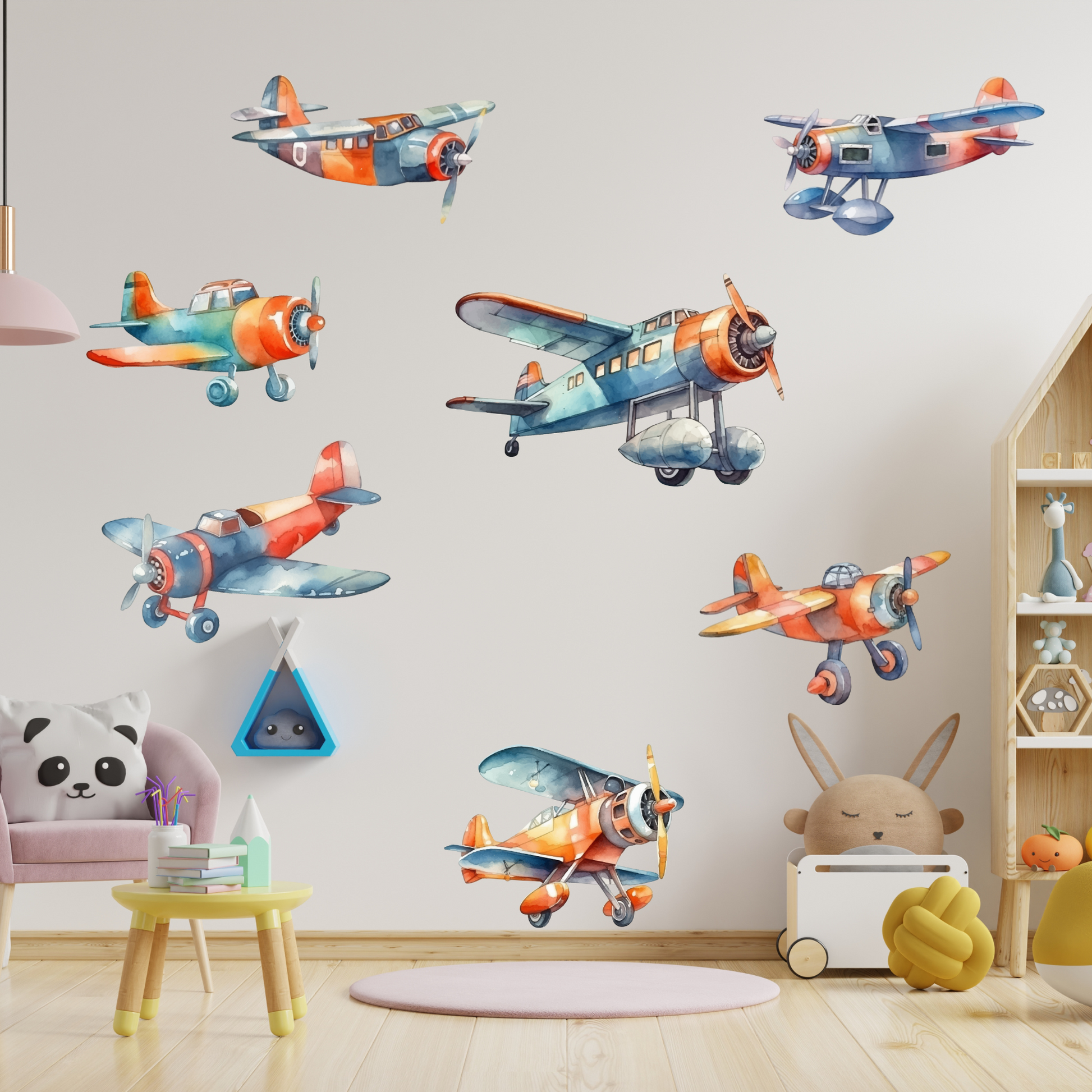 Let your child’s imagination soar with our Airplanes Textile Wall Sticker! This adventurous set features beautifully illustrated vintage-style airplanes in vibrant watercolor tones — ready to fly across the walls of nurseries, bedrooms, or play corners.
