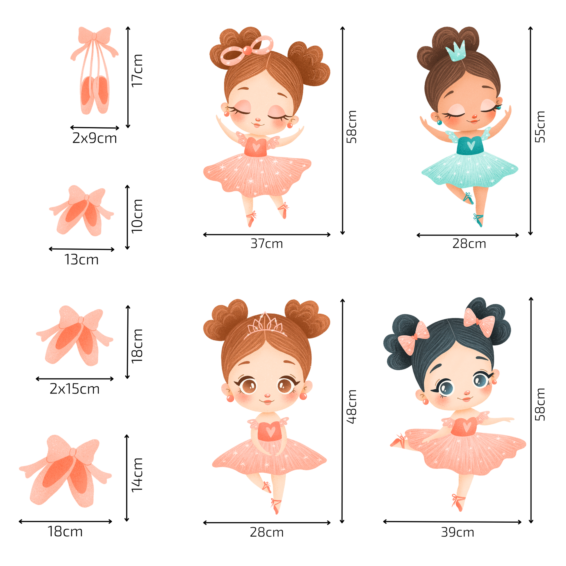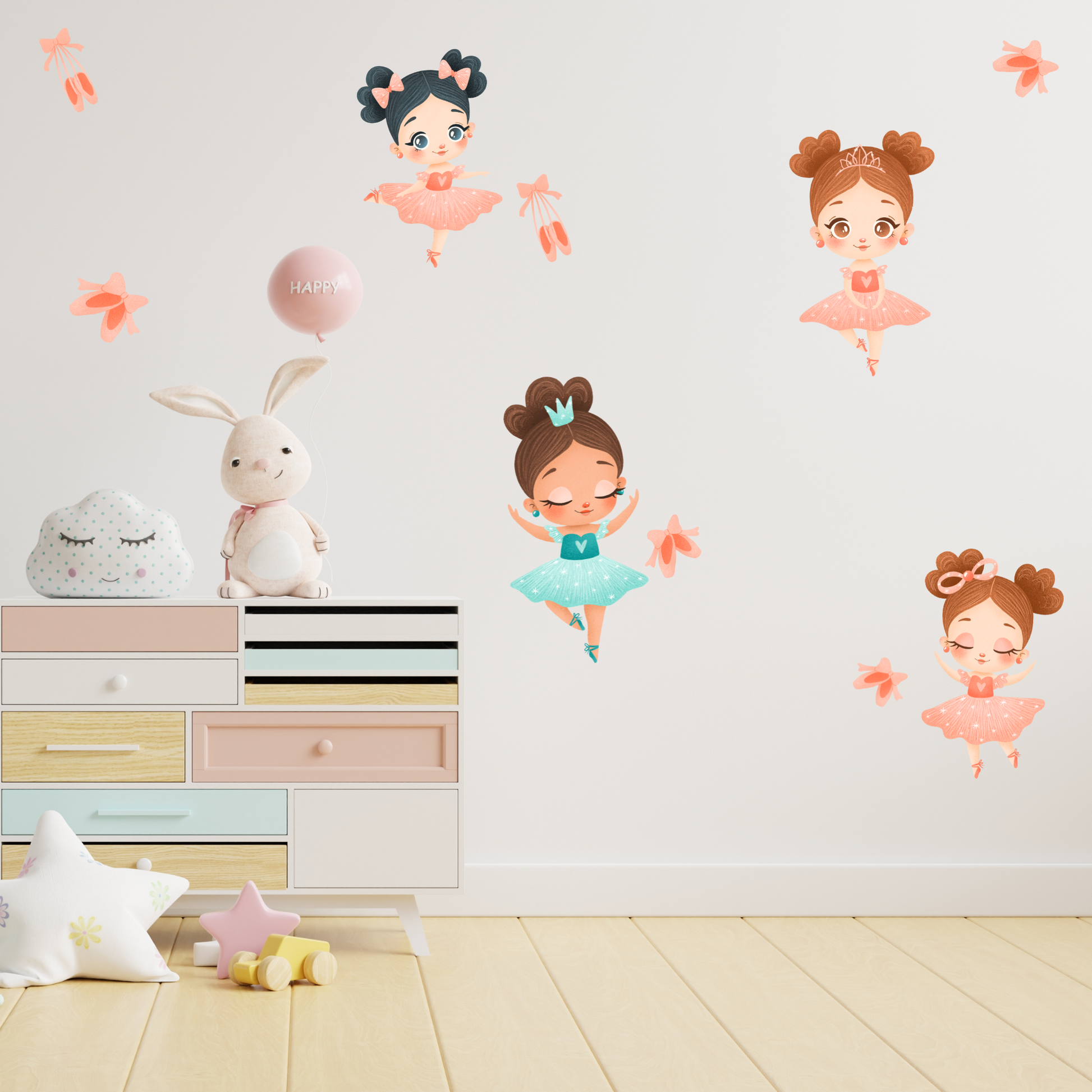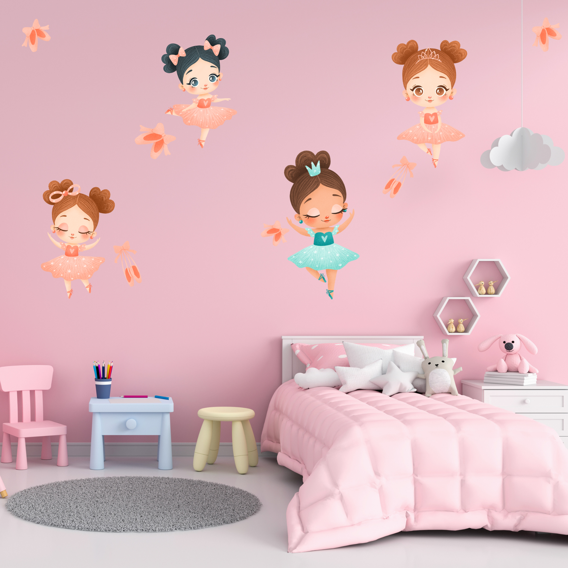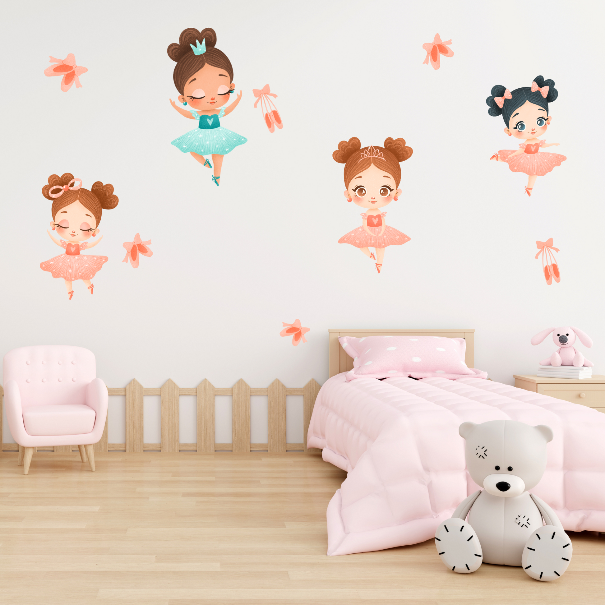 Perfect for dance-loving kids, nurseries, or playrooms, these ballerinas bring a touch of magic, movement, and creativity to your walls.