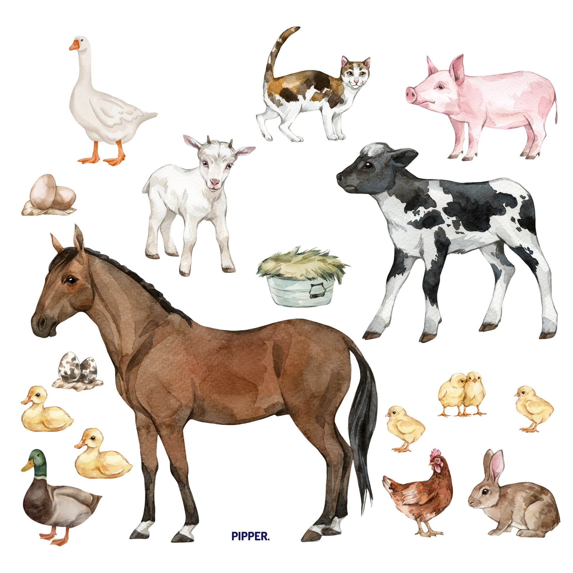 With their soft watercolor style and realistic details, these animals create a warm and calming rural atmosphere — perfect for nurseries, playrooms, childrooms or nature-inspired corners.