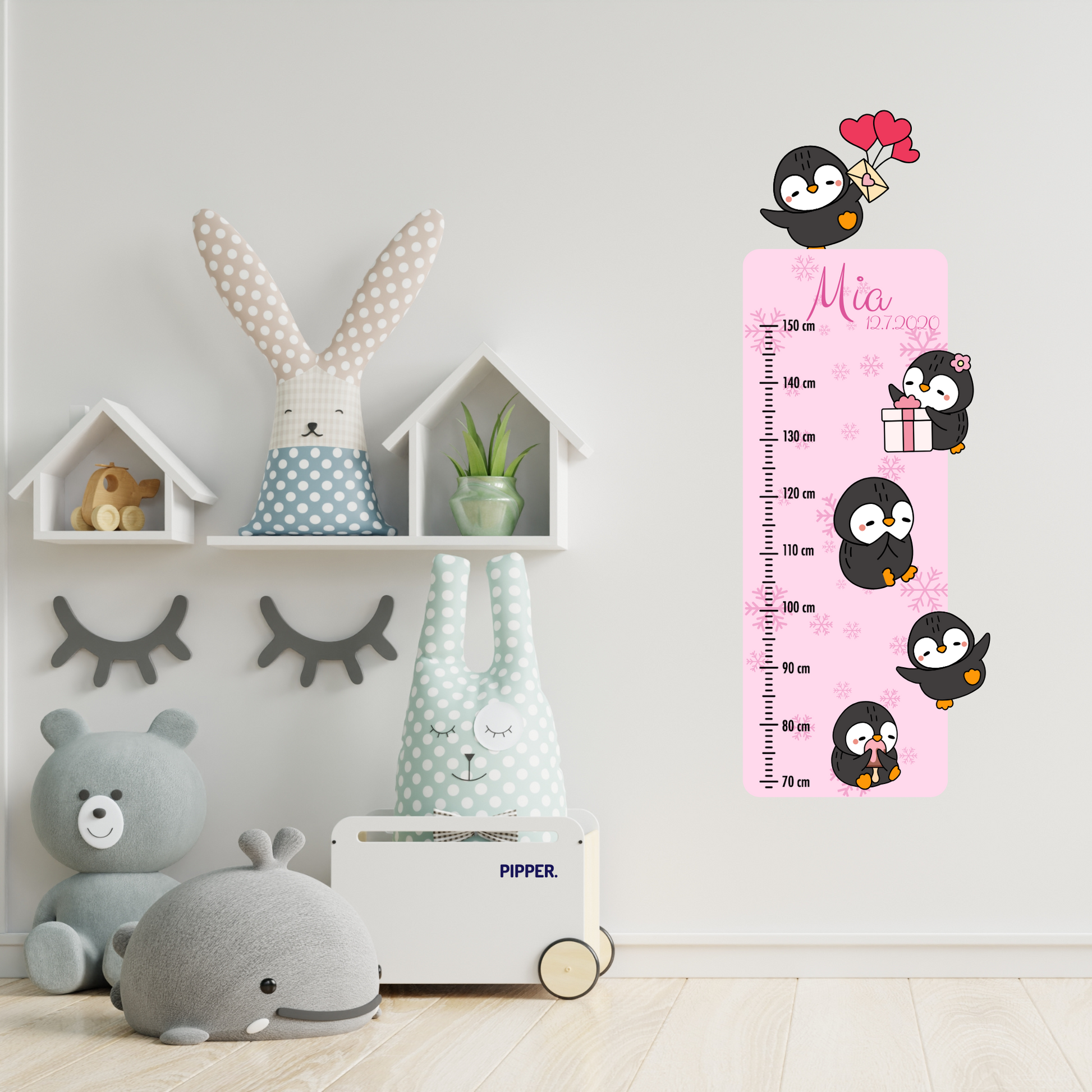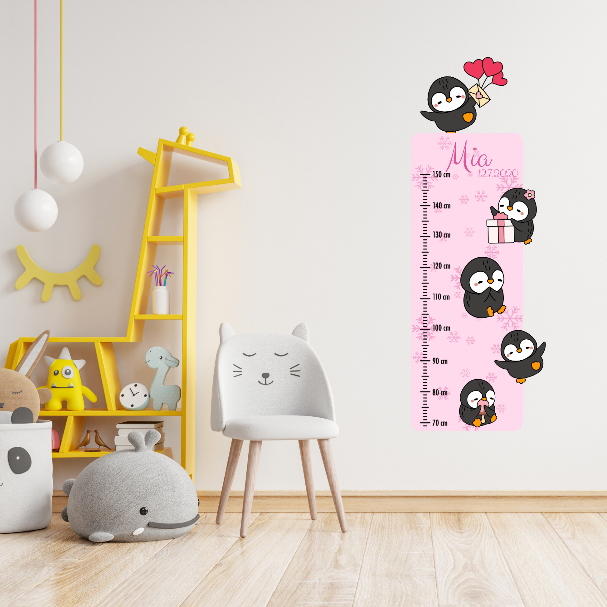 Meet a sweet crew of penguins that will grow alongside your little one every single day! 🐧📏 Our Children’s Measuring Textile Wall Sticker – “Penguins” with pink background is a charming and practical decoration for a child’s room. It tracks height from 70 cm to 150 cm while adding softness, joy, and a playful atmosphere to any space.