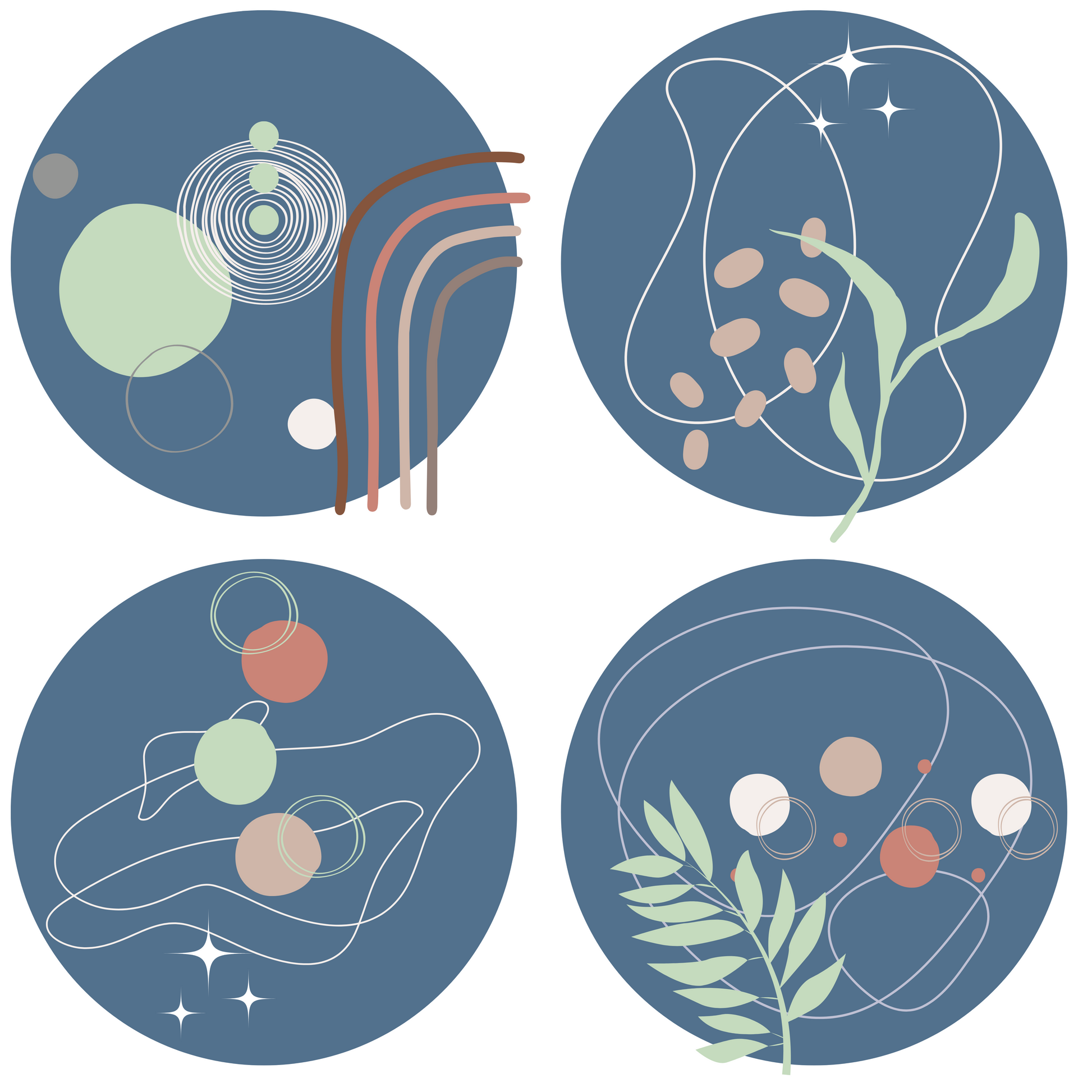 Add a modern artistic flair to your interior with our Collection of Round Wall Stickers – "Abstract". This stylish set includes four round textile wall stickers featuring unique minimalist designs with abstract shapes, organic lines.✨