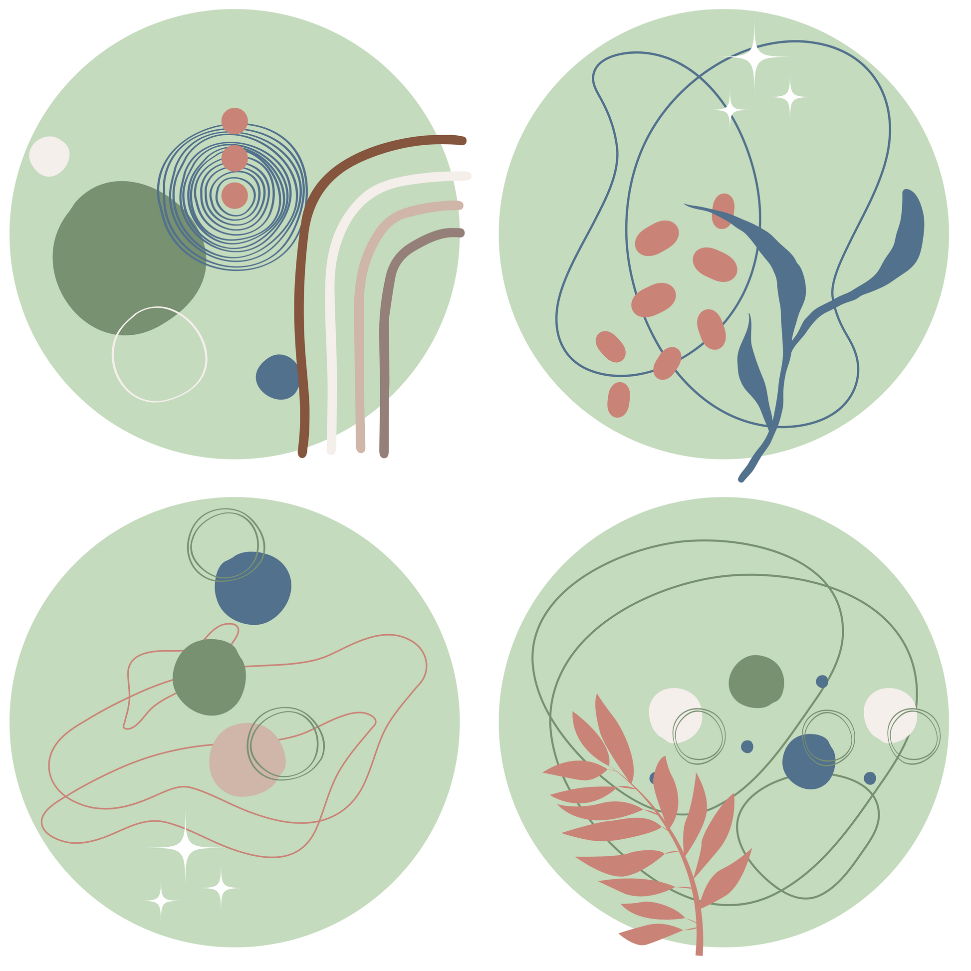 Add a modern artistic flair to your interior with our Collection of Round Wall Stickers – "Abstract". This stylish set includes four round textile wall stickers featuring unique minimalist designs with abstract shapes, organic lines.✨