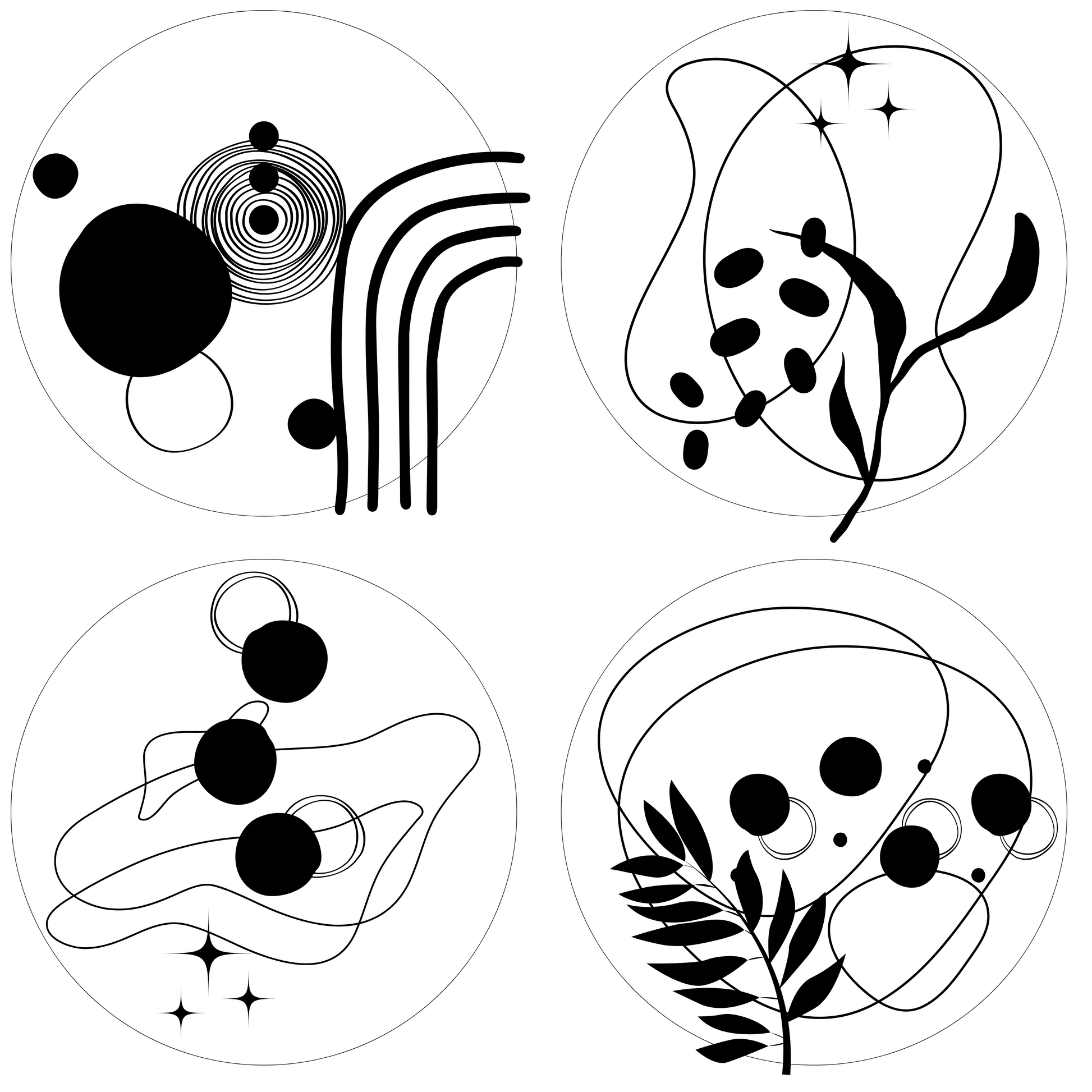 Add a modern artistic flair to your interior with our Collection of Round Wall Stickers – "Abstract". This stylish set includes four round textile wall stickers featuring unique minimalist designs with abstract shapes, organic lines.✨