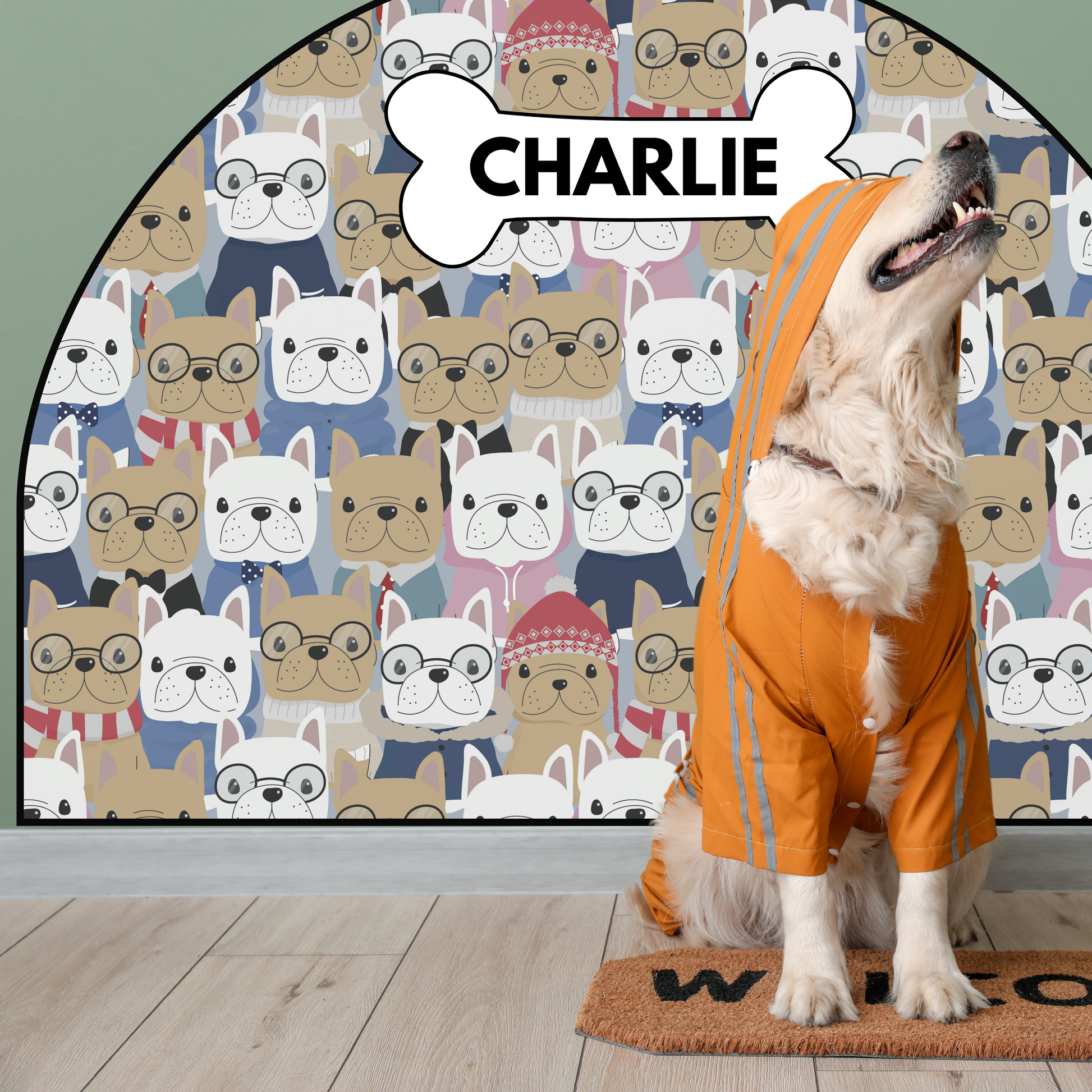 Its durable and waterproof surface makes it a practical yet beautiful addition to any home, ensuring your walls stay spotless while blending seamlessly with your décor. Because a happy dog and a clean home can go paw in paw! 🐾💕