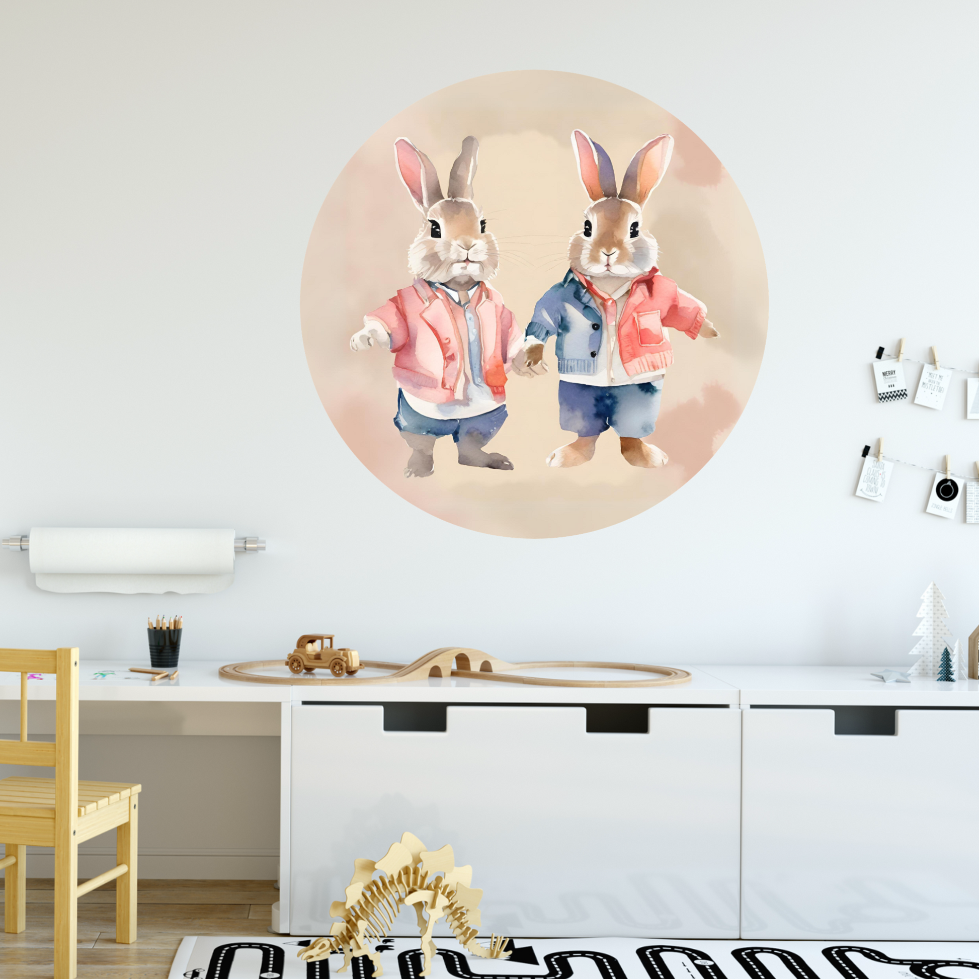 Add a touch of charm and coziness to your child’s room with our Round Wall Sticker – “Bunnies”! These two stylish little rabbits, dressed in cute jackets, are ready to hop into your heart and spark sweet adventures. 🎨👟