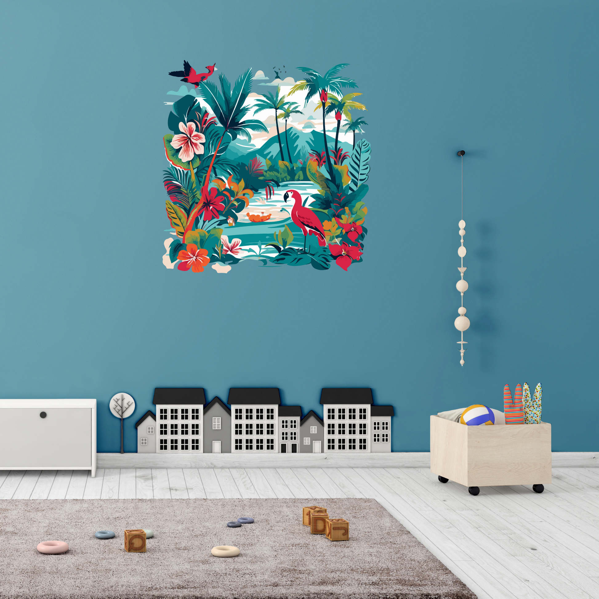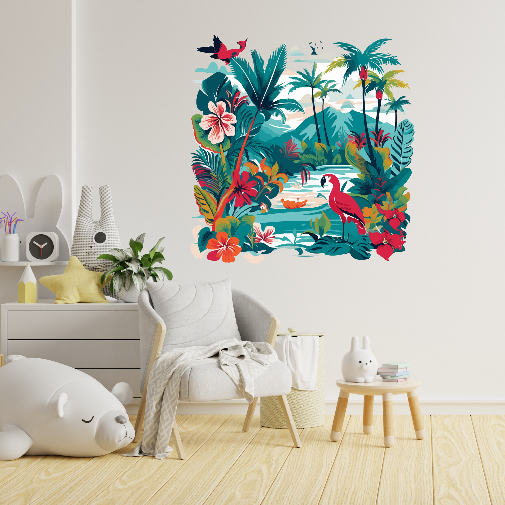 Perfect for kids’ rooms, play areas, or even creative corners for adults, this design brings color, joy, and a sense of escape straight to your wall. Let your room bloom with the spirit of the jungle! 🌿💫