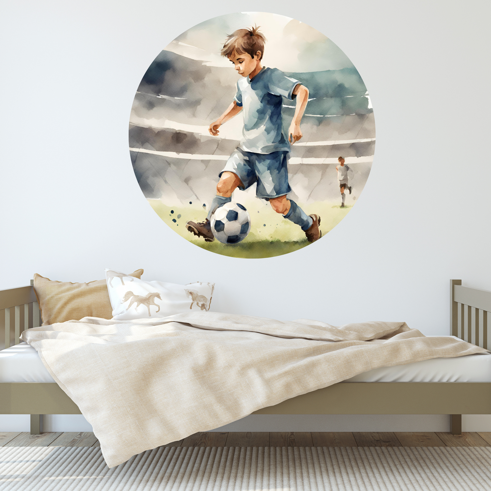Kick off the fun and passion for the game with our Round Wall Sticker – “Football Boy”! This dynamic design captures the focus, energy, and determination of a young player in action on the field.