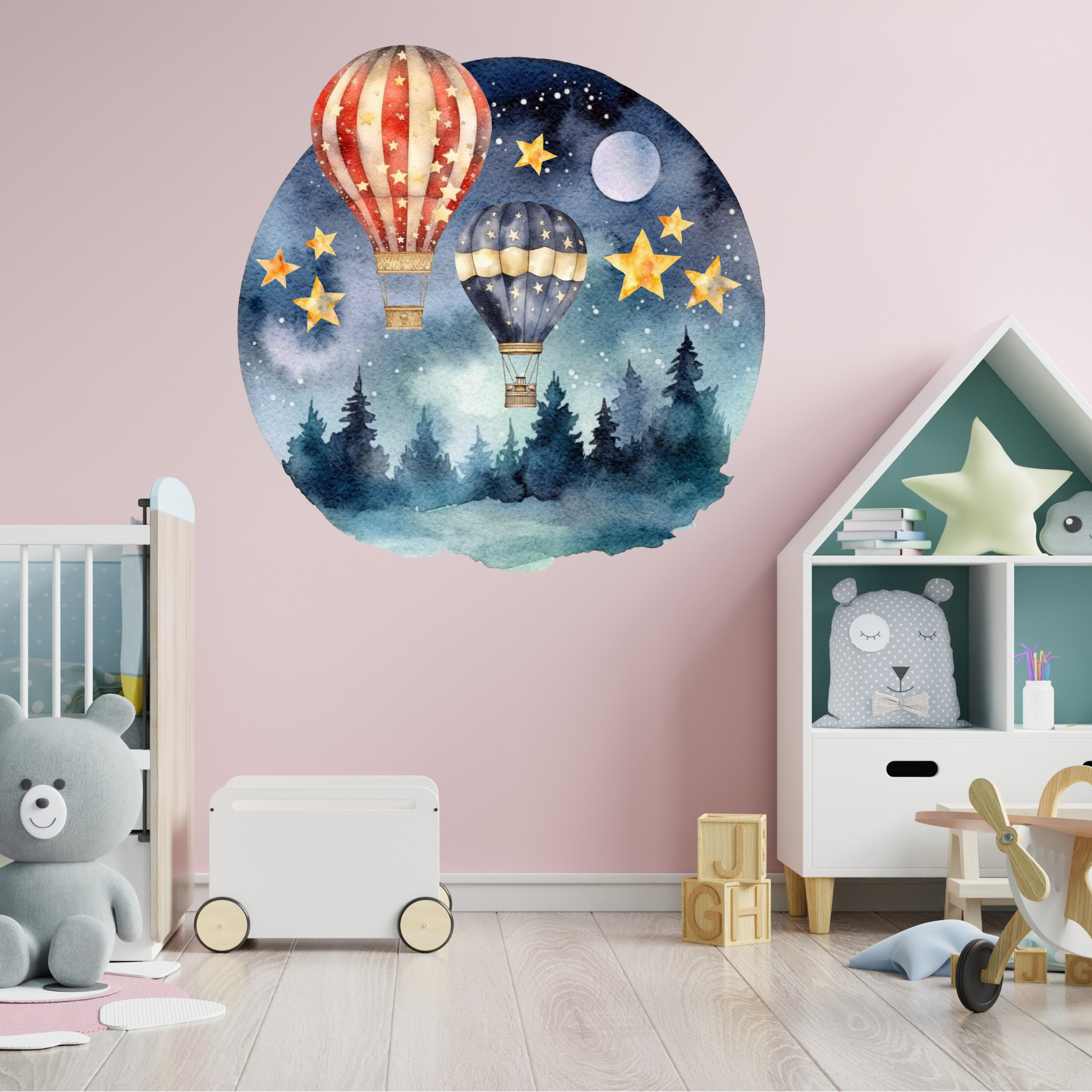 Perfect for nurseries, play areas, or any cozy nook, this sticker creates a calm, whimsical vibe that inspires curiosity and wonder. Time to float among the stars and explore the skies! 🎈🌌💫