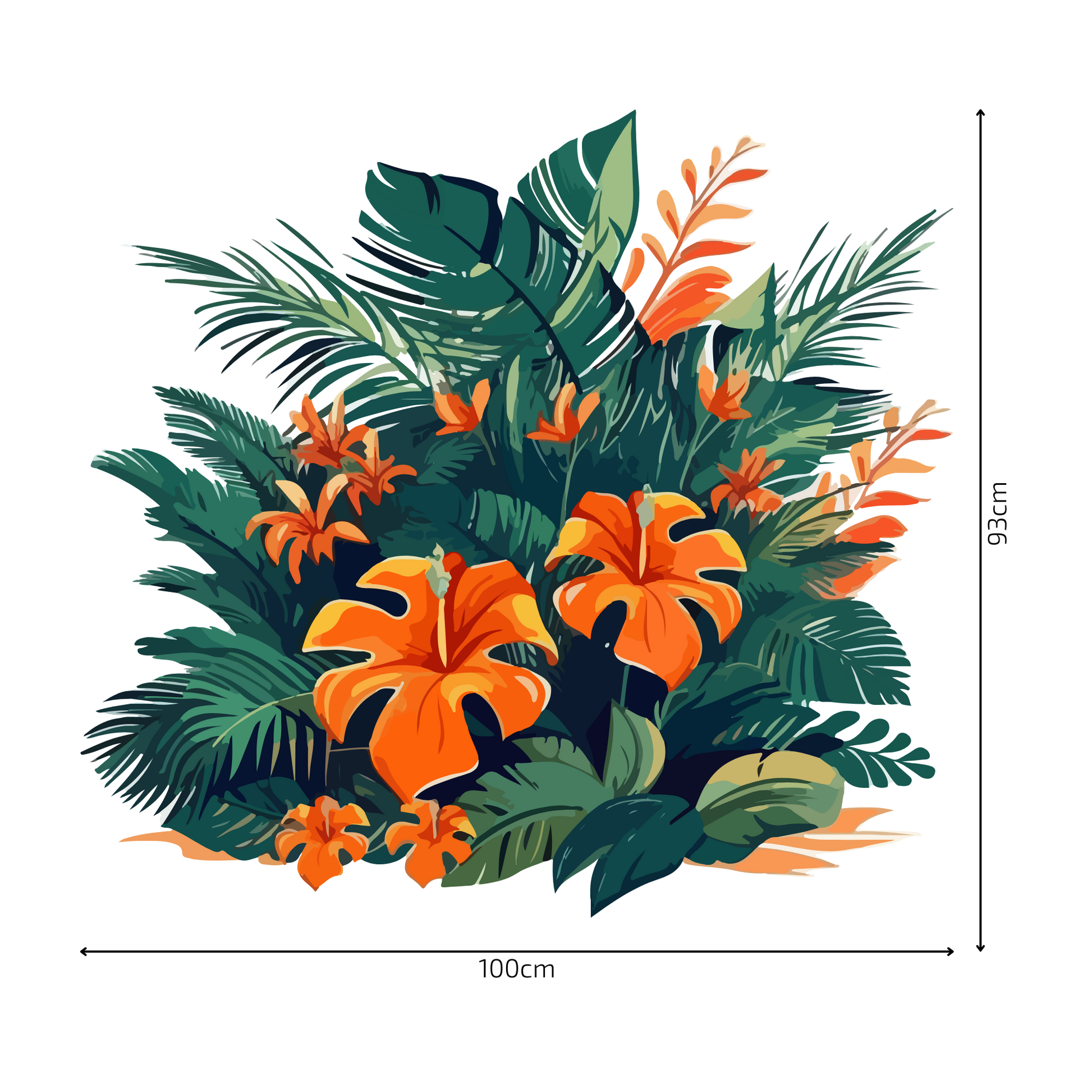 Bring the vibrant energy of the tropics indoors with our Round Wall Sticker – “Leaves”! This lush design bursts with exotic foliage and fiery orange flowers, creating a bold, botanical atmosphere full of color and life. 🍃🌸