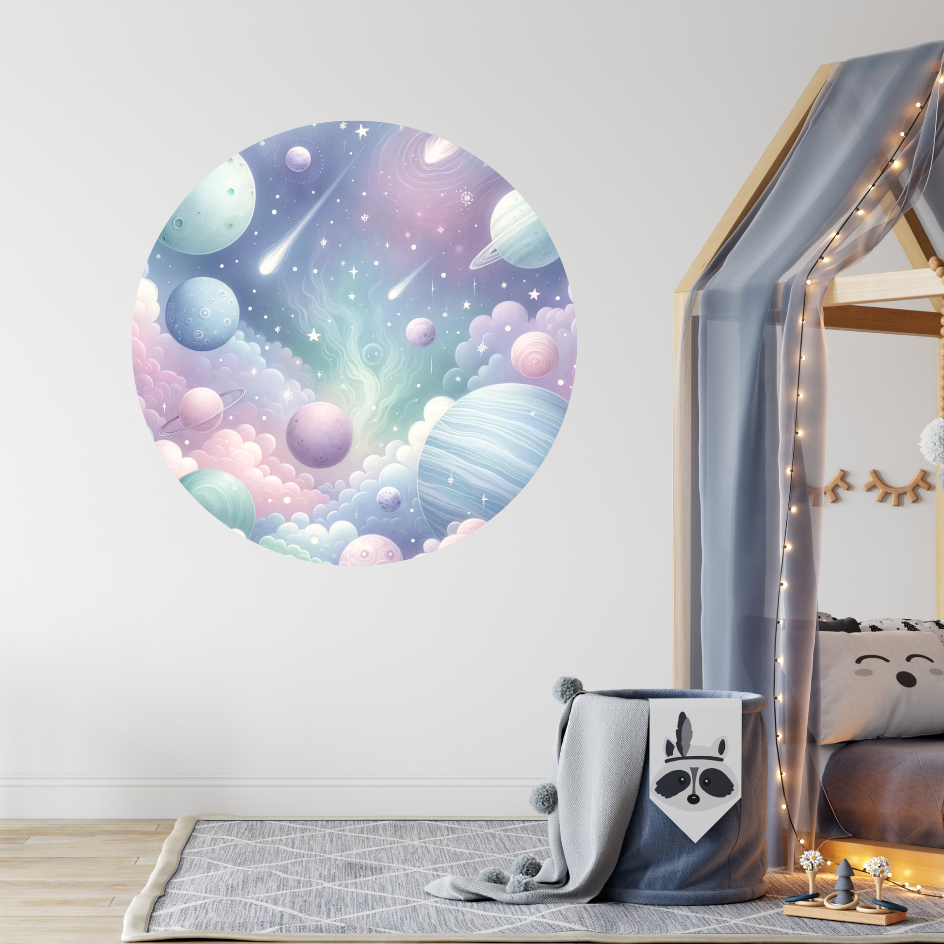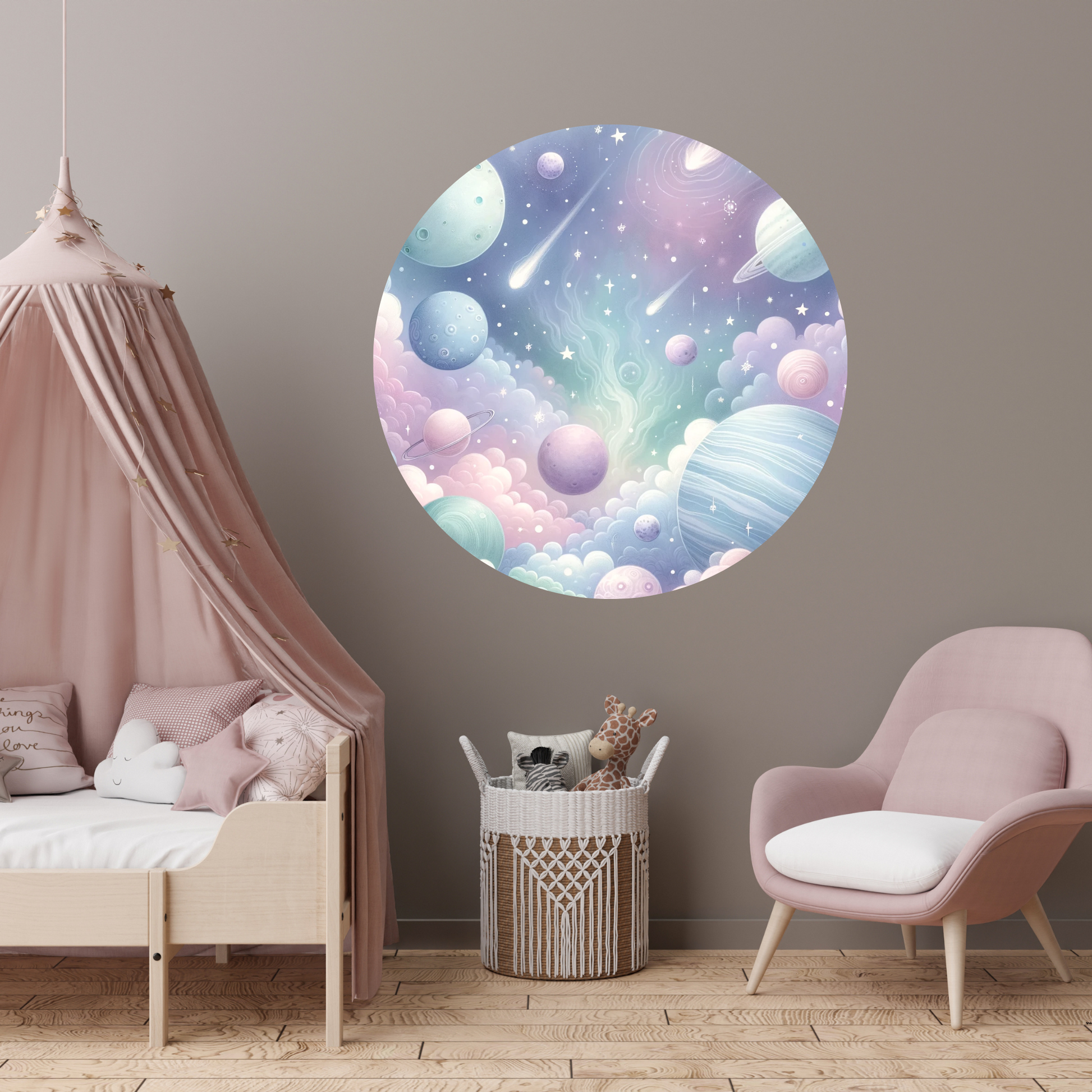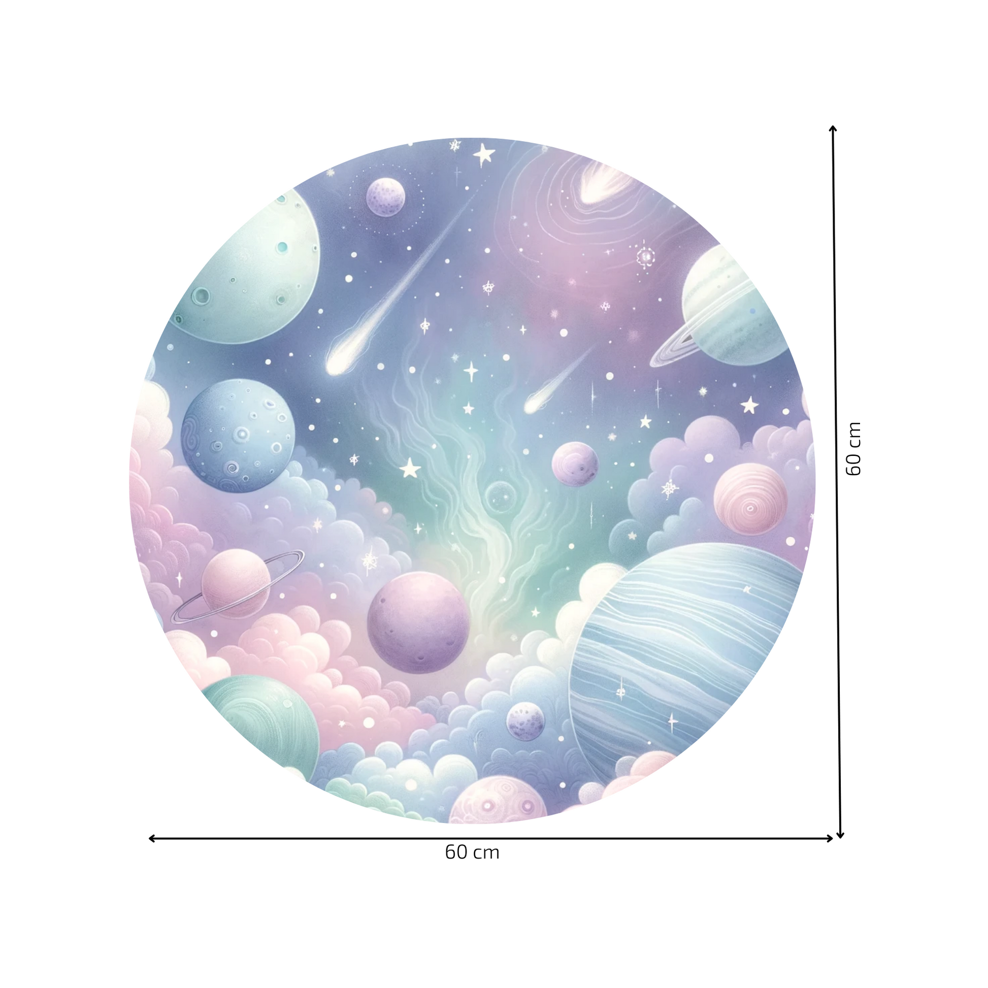 Unleash a world of wonder with our Round Wall Sticker – “Magical Universe”. This dreamy cosmic scene is filled with pastel-colored planets, swirling galaxies, shooting stars, and soft space clouds - a true interstellar fantasy that will spark curiosity in every young explorer. 🌠🌈