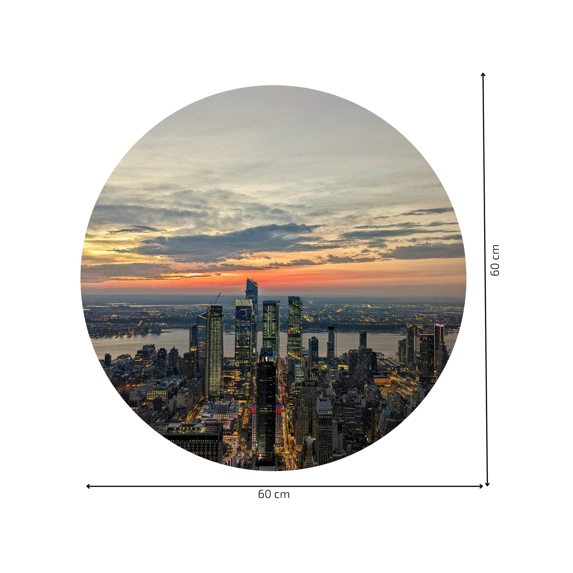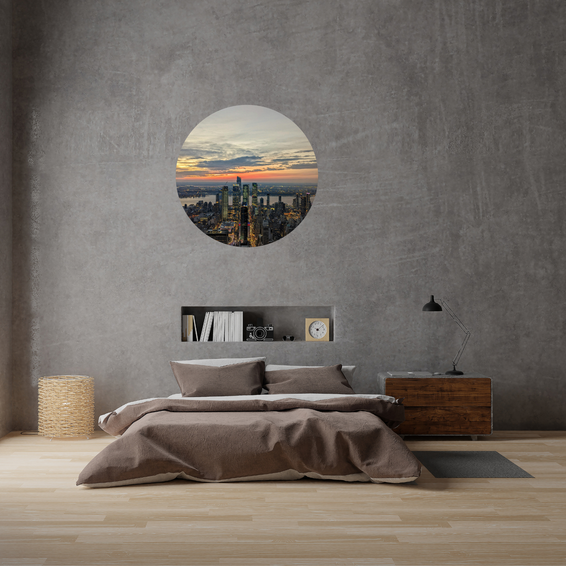 Bring a touch of New York to your space with our Round Wall Sticker. 🌇🗽 The sunset over the iconic skyscrapers captures that magical moment when the city that never sleeps transforms from daytime hustle to nighttime adventure. A modern design that energizes any wall – from the living room to the home office.