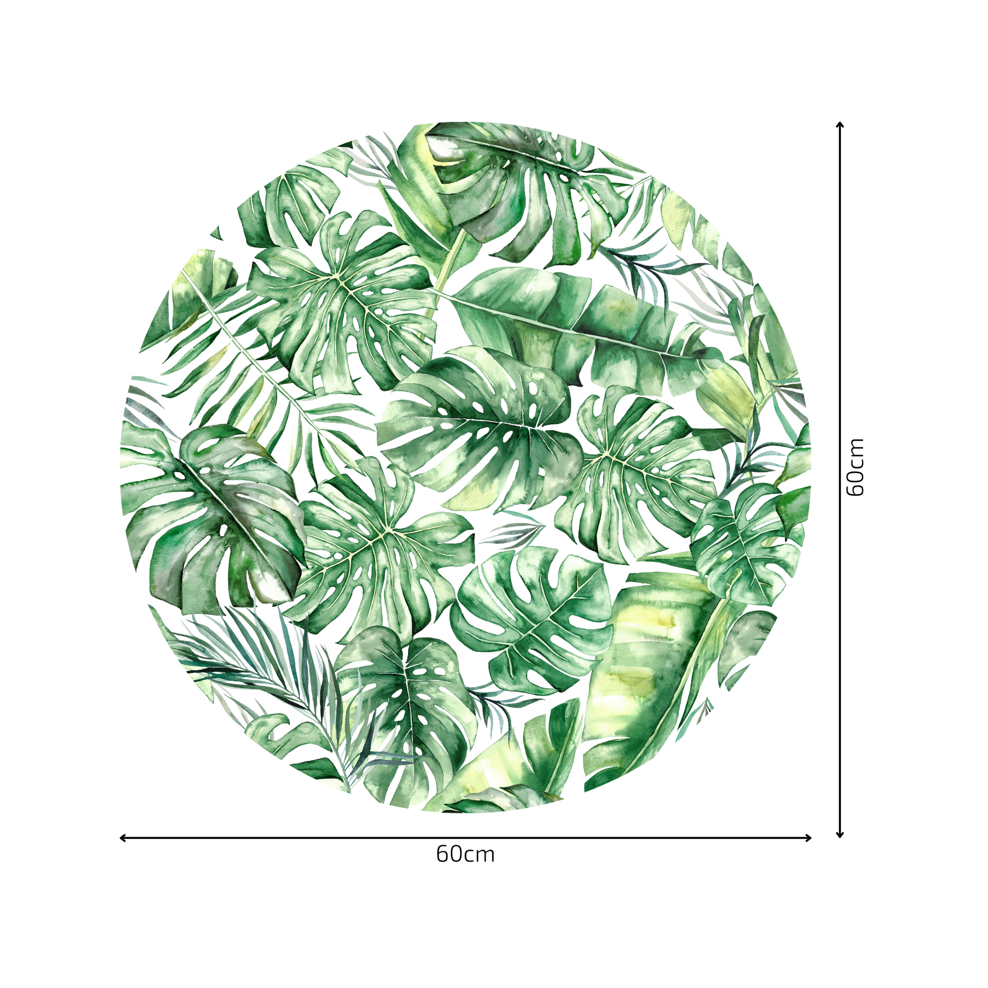 Bring the lush vibes of a tropical escape right into your space with our Round Wall Sticker – “Tropical Leaves”! This fresh and leafy design is bursting with vibrant greens and natural patterns, perfect for adding a splash of the jungle to any room.