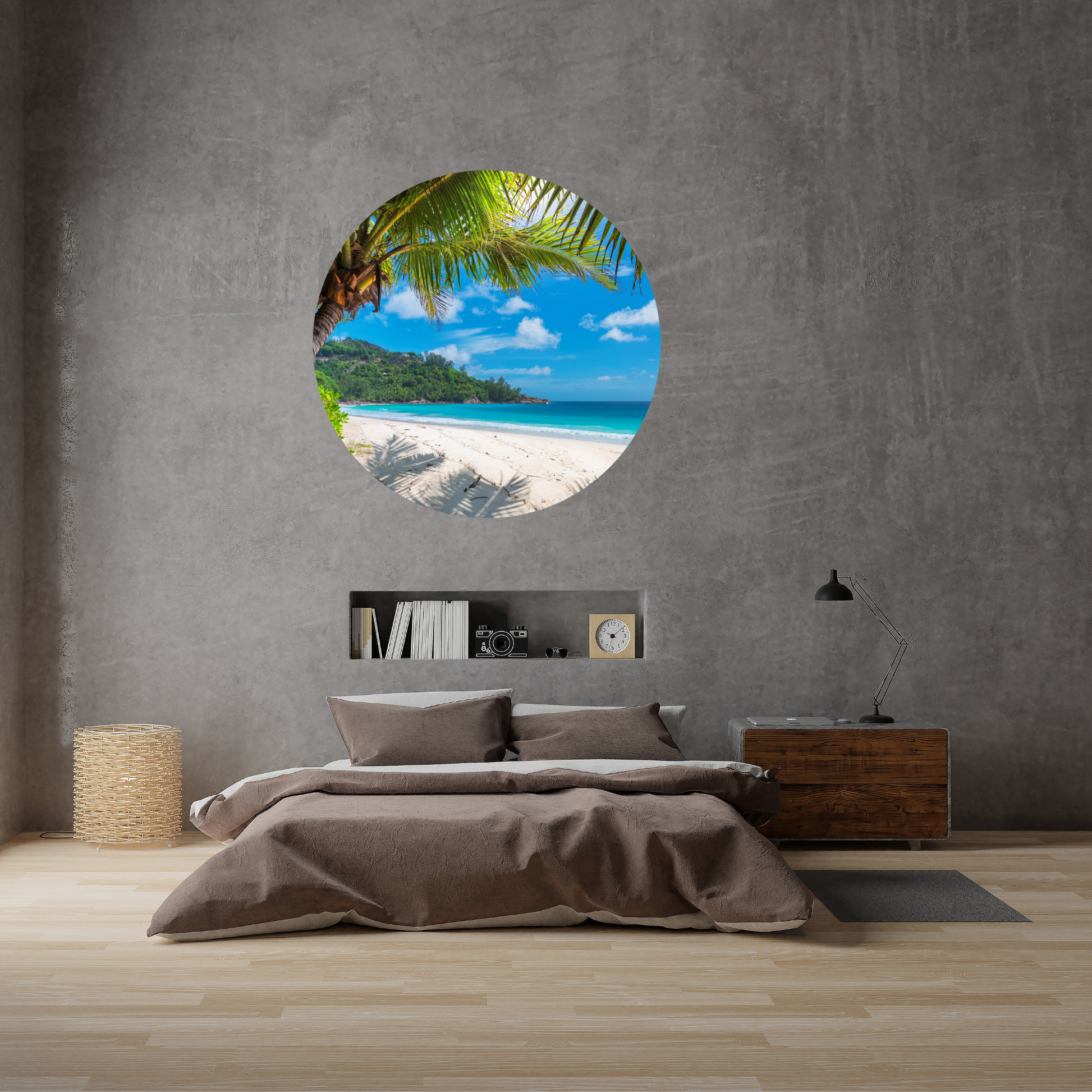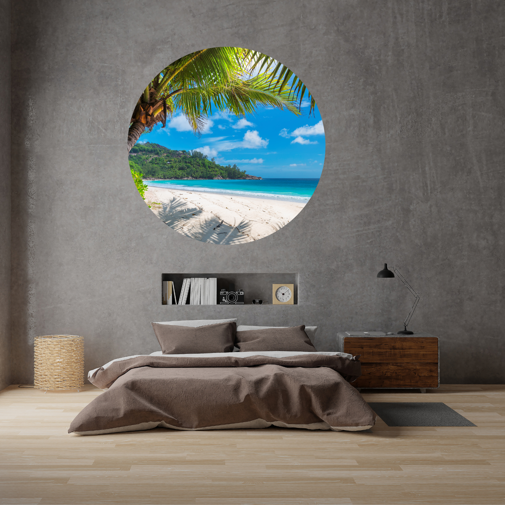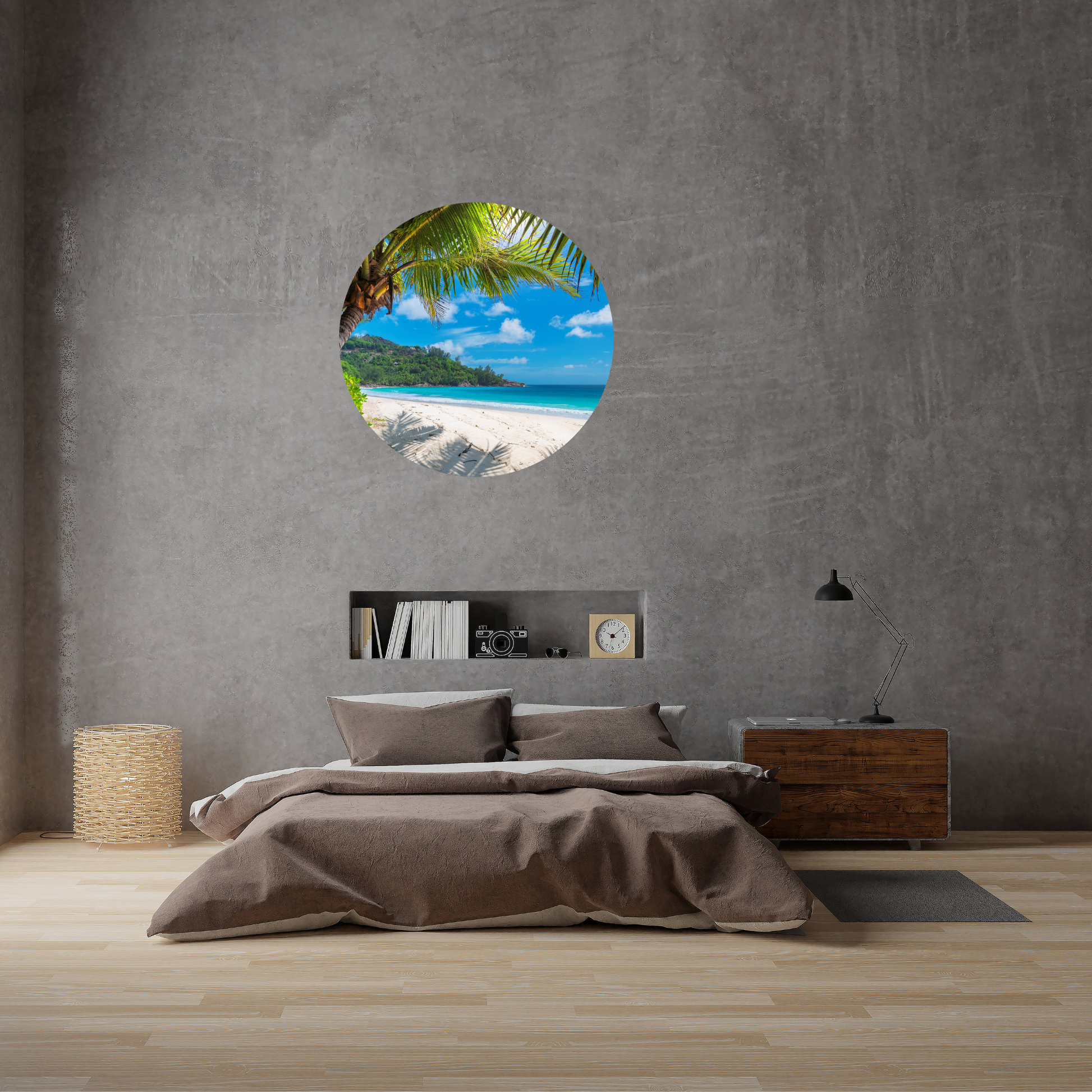 The Round Wall Sticker – “Tropical Paradise” captures an idyllic corner of the world where soft sand meets the ocean and palm trees whisper stories of summer adventures. This visual reminder brings the feeling of peace, sunshine, and relaxation right into your home - every single day.