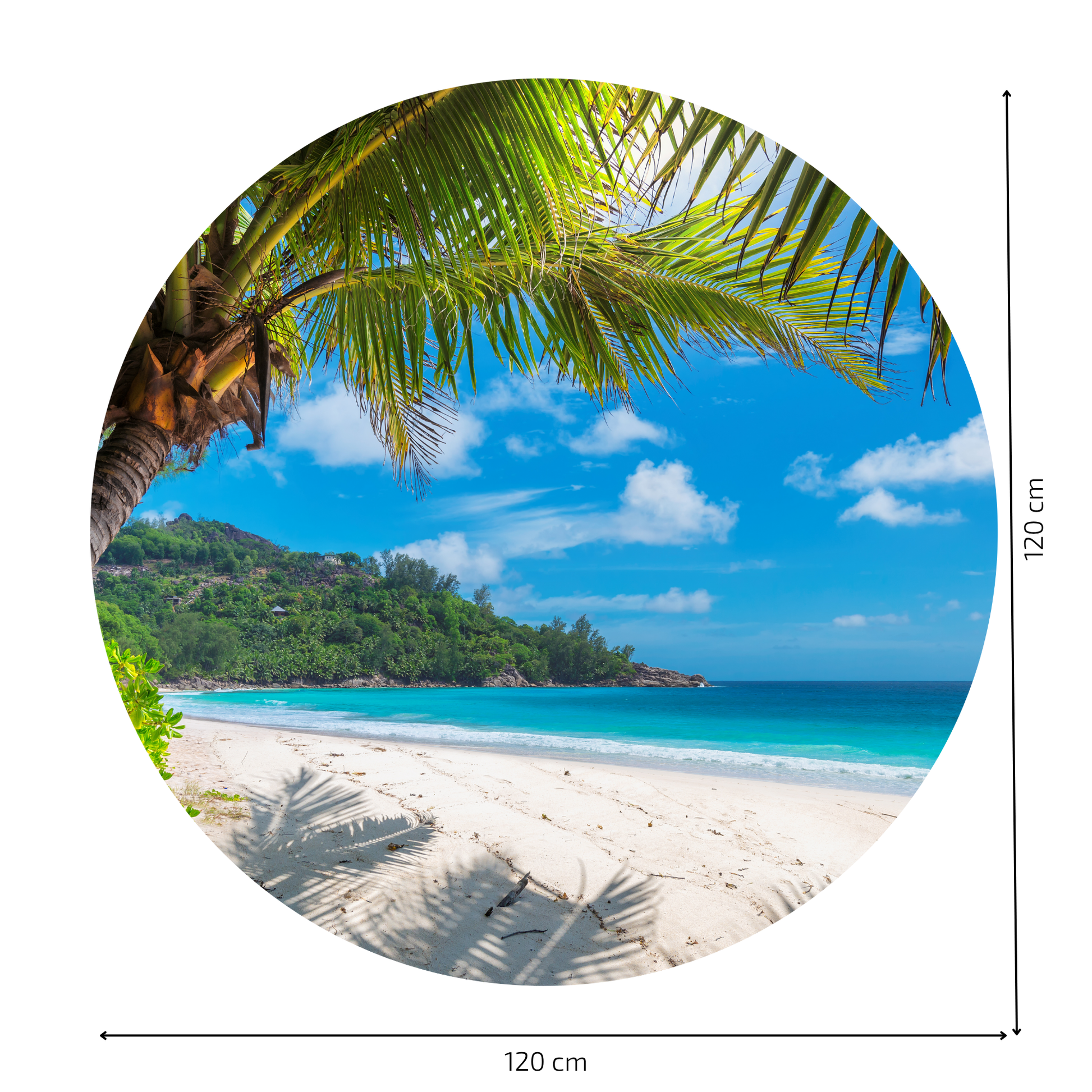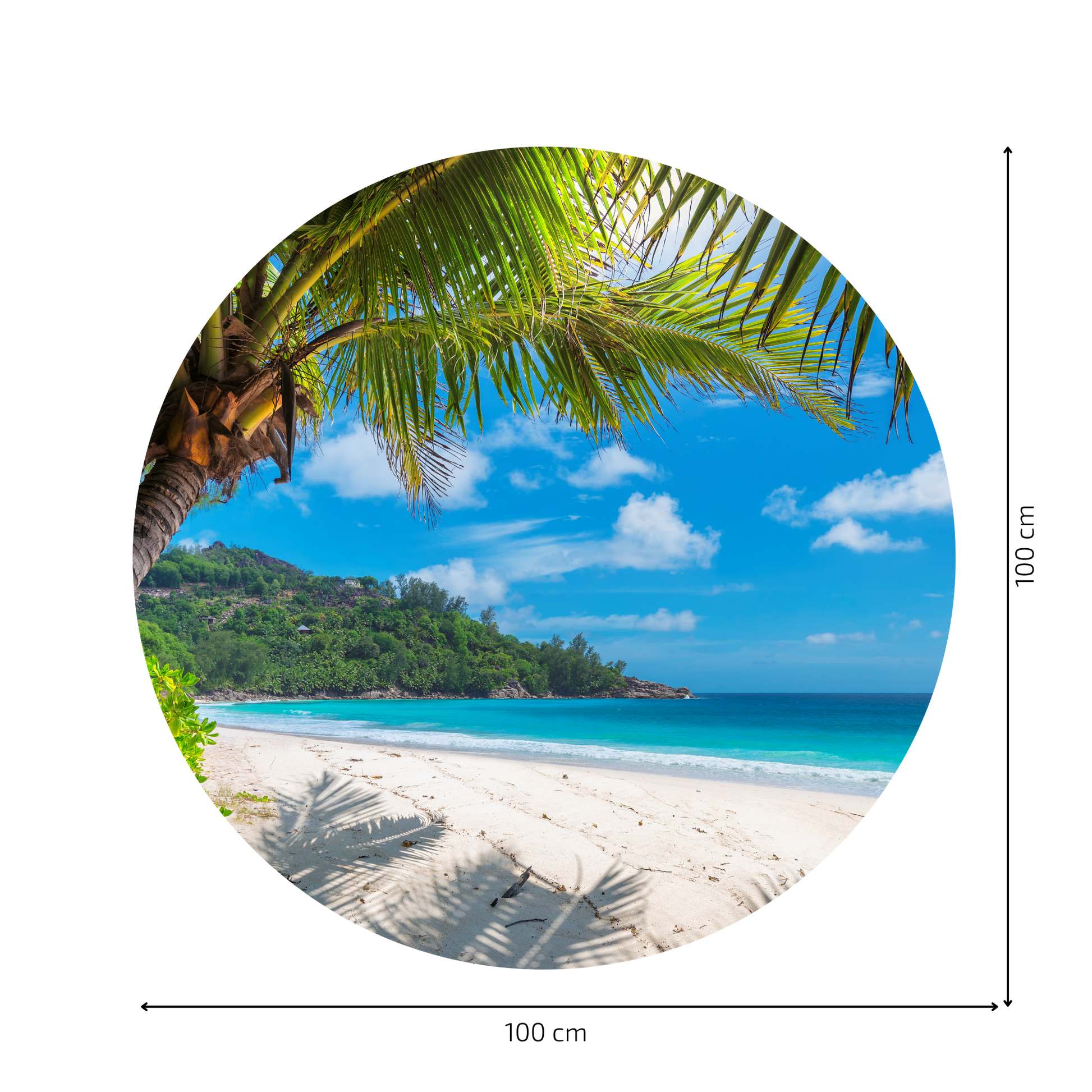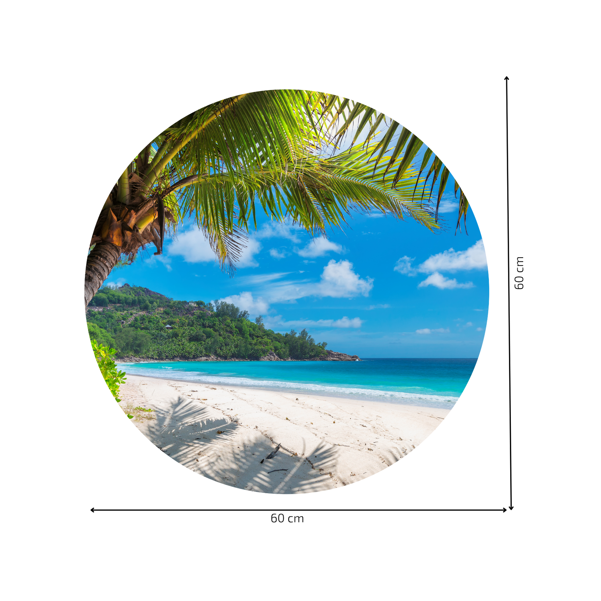 The Round Wall Sticker – “Tropical Paradise” captures an idyllic corner of the world where soft sand meets the ocean and palm trees whisper stories of summer adventures. This visual reminder brings the feeling of peace, sunshine, and relaxation right into your home - every single day.
