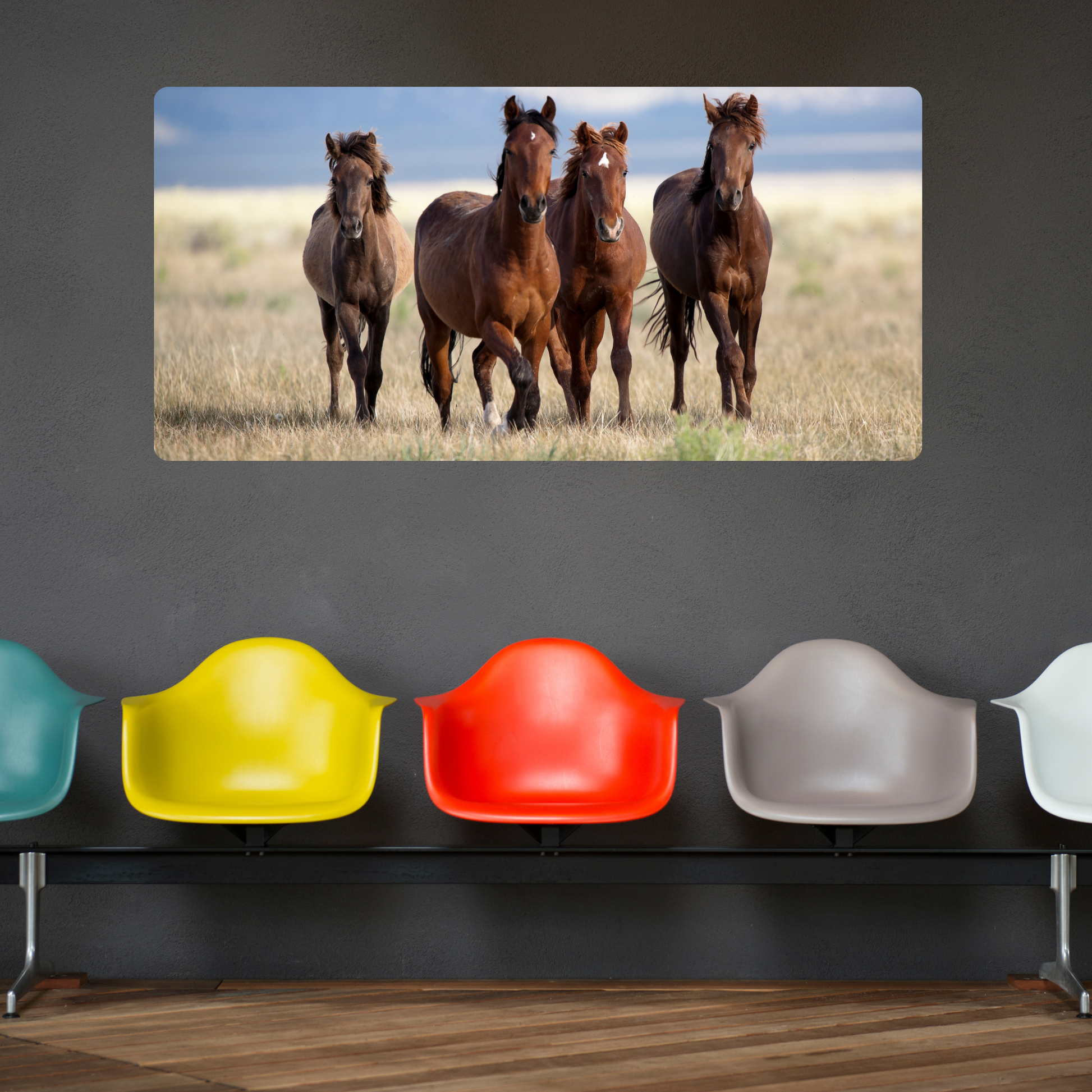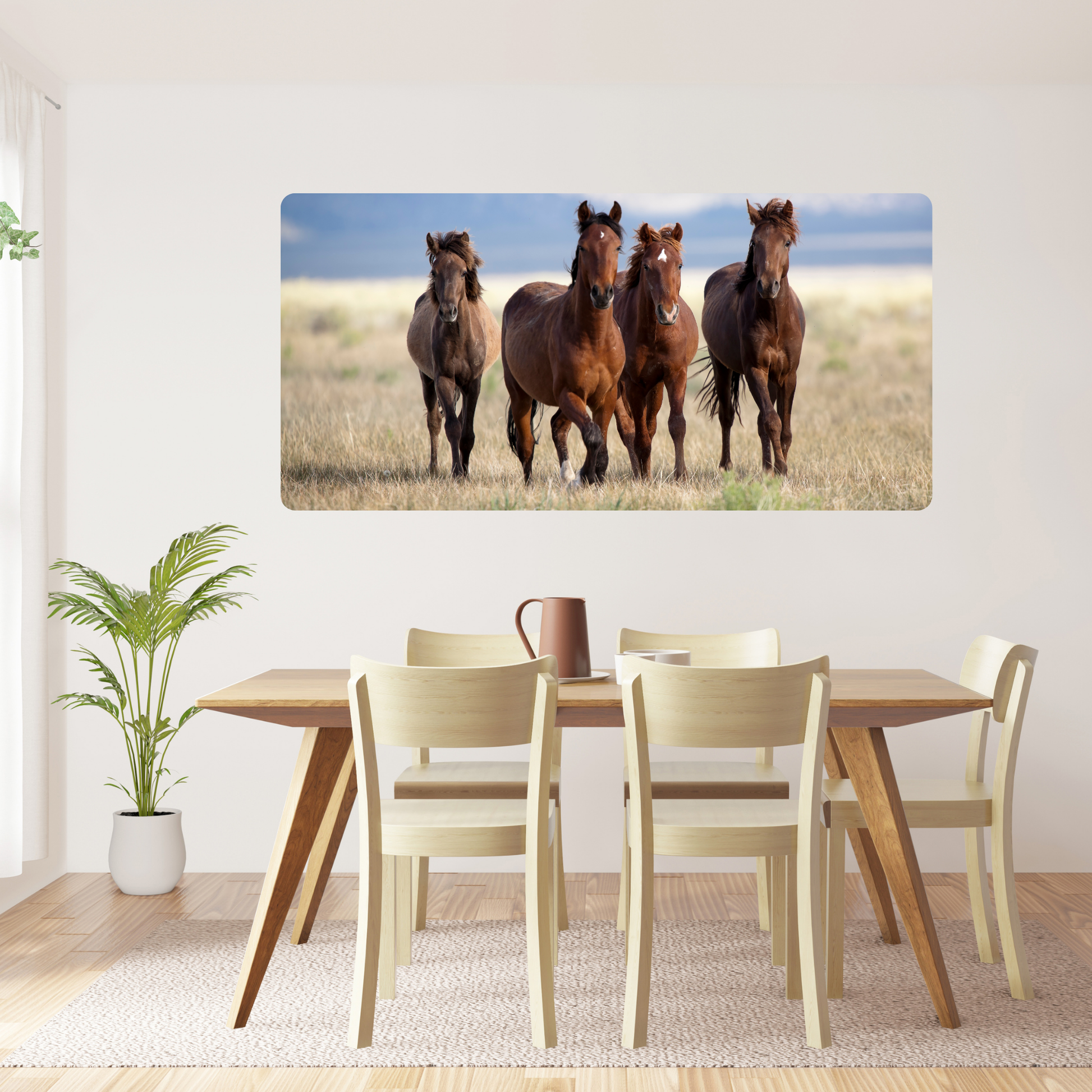 Printed on premium textile material, this peel-and-stick artwork is easy to apply, reposition, and remove - no tools needed. A perfect piece for nature lovers, horse enthusiasts, or anyone who wants to bring a touch of wilderness into their home or office.