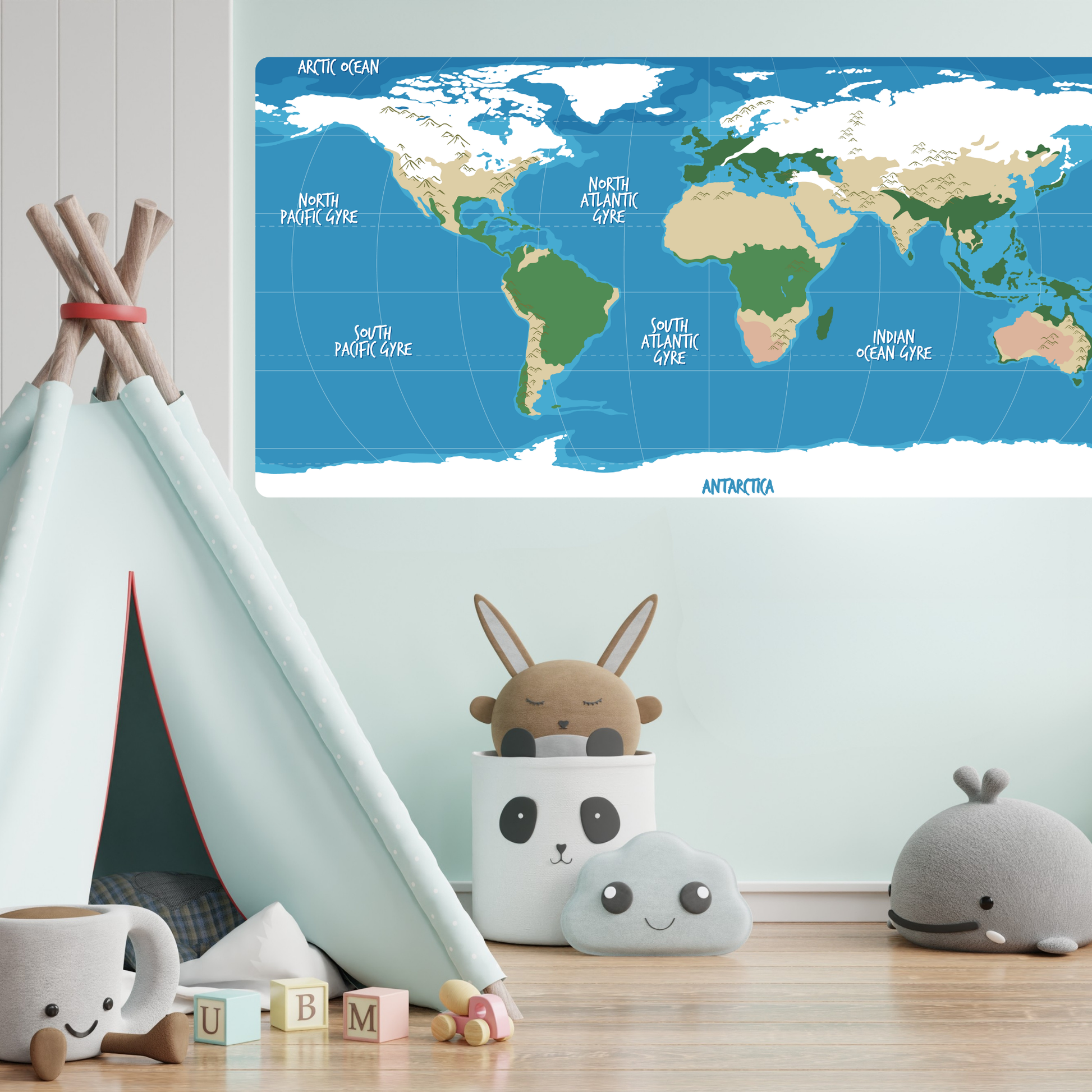 Perfect for playrooms, classrooms, or child rooms, this stylish and interactive wall art not only decorates the space but also inspires learning and discovery. The peel-and-stick textile material is easy to apply, reposition, and remove - no tools or damage to walls!