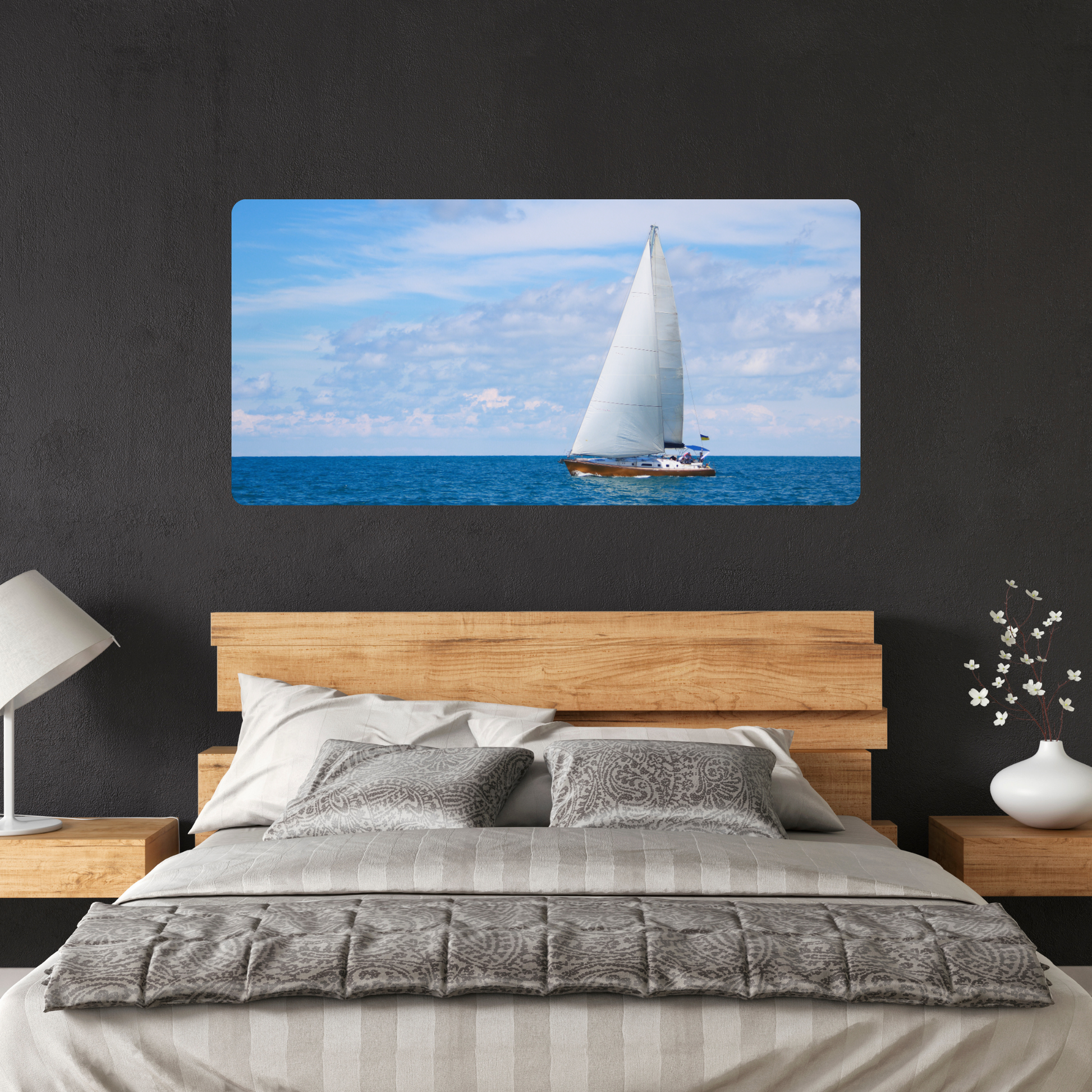 Set sail into serenity with our Self-Adhesive Textile Painting – Sailboat at Sea. This peaceful design features a bright white sailboat gliding across the sparkling blue sea under a sky full of soft clouds - a perfect escape for any room.