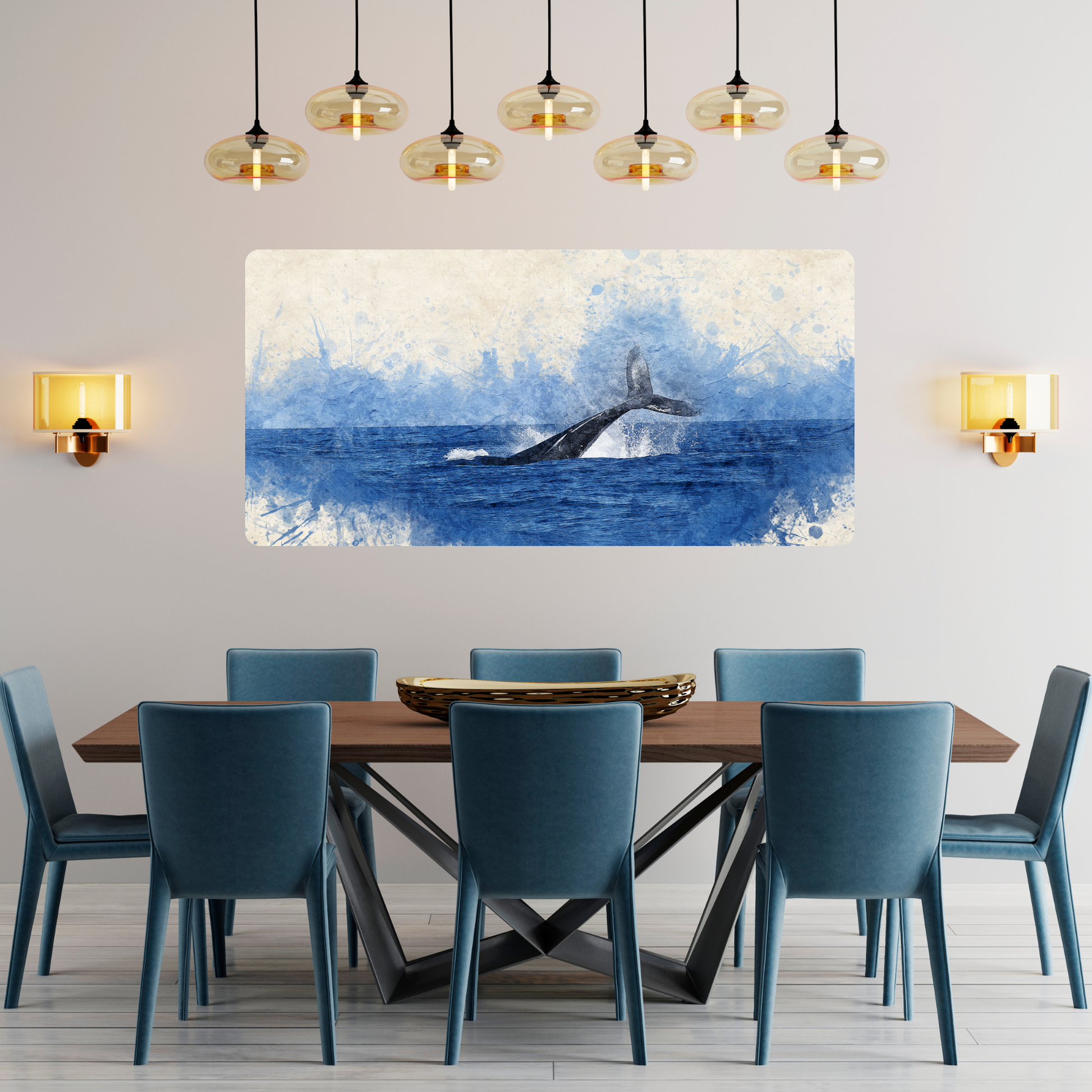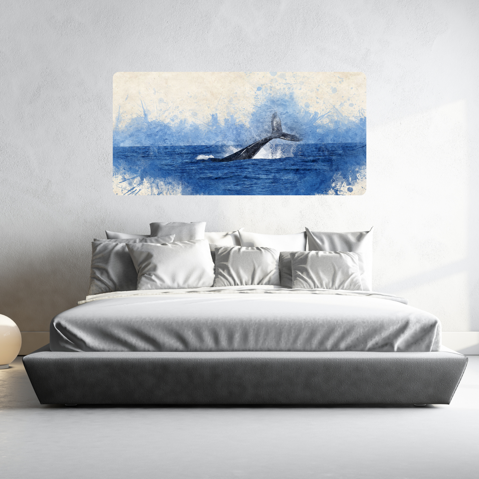 Dive into the beauty of the deep blue with our Self-Adhesive Textile Painting – Whale in the Ocean. 🖼️💙 This stunning watercolor-style design captures the majestic tail of a whale splashing through the sea - a graceful moment frozen in time that brings calm, movement, and nature's wonder into your space.