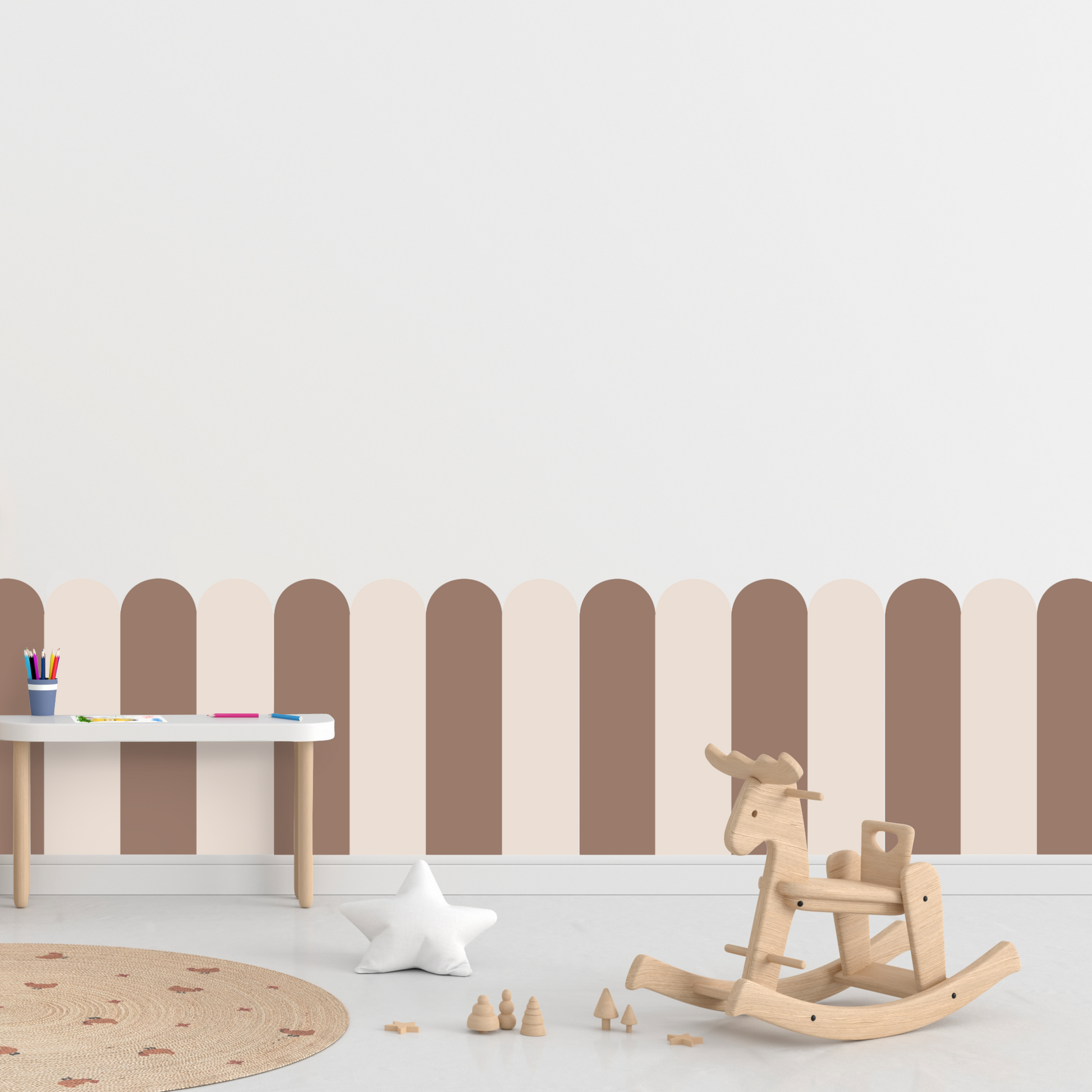 Add a modern and stylish touch to your space with our Self-Adhesive Textile Wallpaper – Arch – Brown Shades! 🤎 Its simple yet elegant design makes it perfect for kids’ rooms, playrooms, or any area that needs a fresh and cozy atmosphere. The smooth arch pattern in harmonious brown tones creates a structured, balanced look that complements any interior.