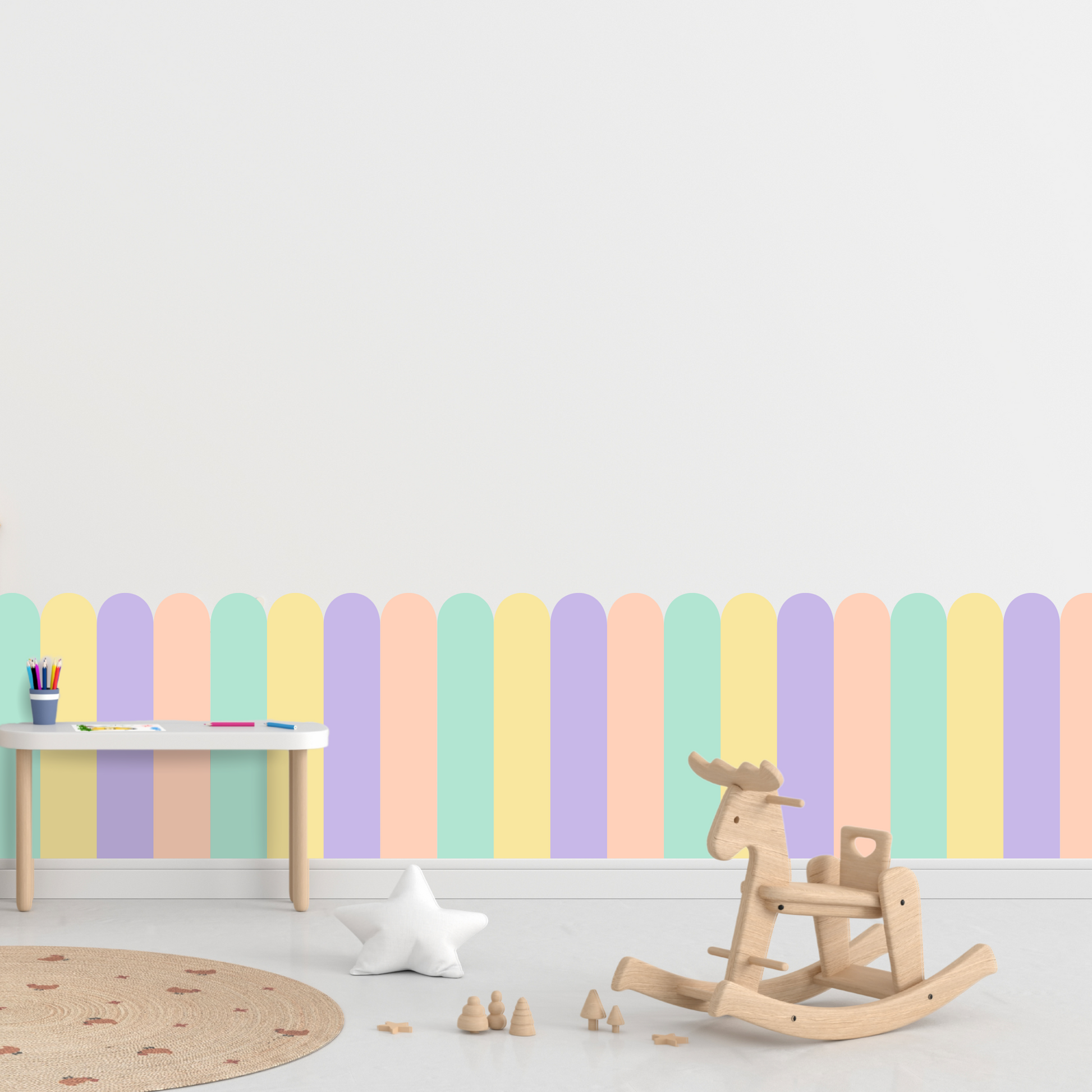 Add a modern and stylish touch to your space with our Self-Adhesive Textile Wallpaper – Arch – Pastel Shades! 💛💜🧡 Its simple yet elegant design makes it perfect for kids’ rooms, playrooms, or any area that needs a fresh and cozy atmosphere. The smooth arch pattern in harmonious pastel tones creates a structured, balanced look that complements any interior.