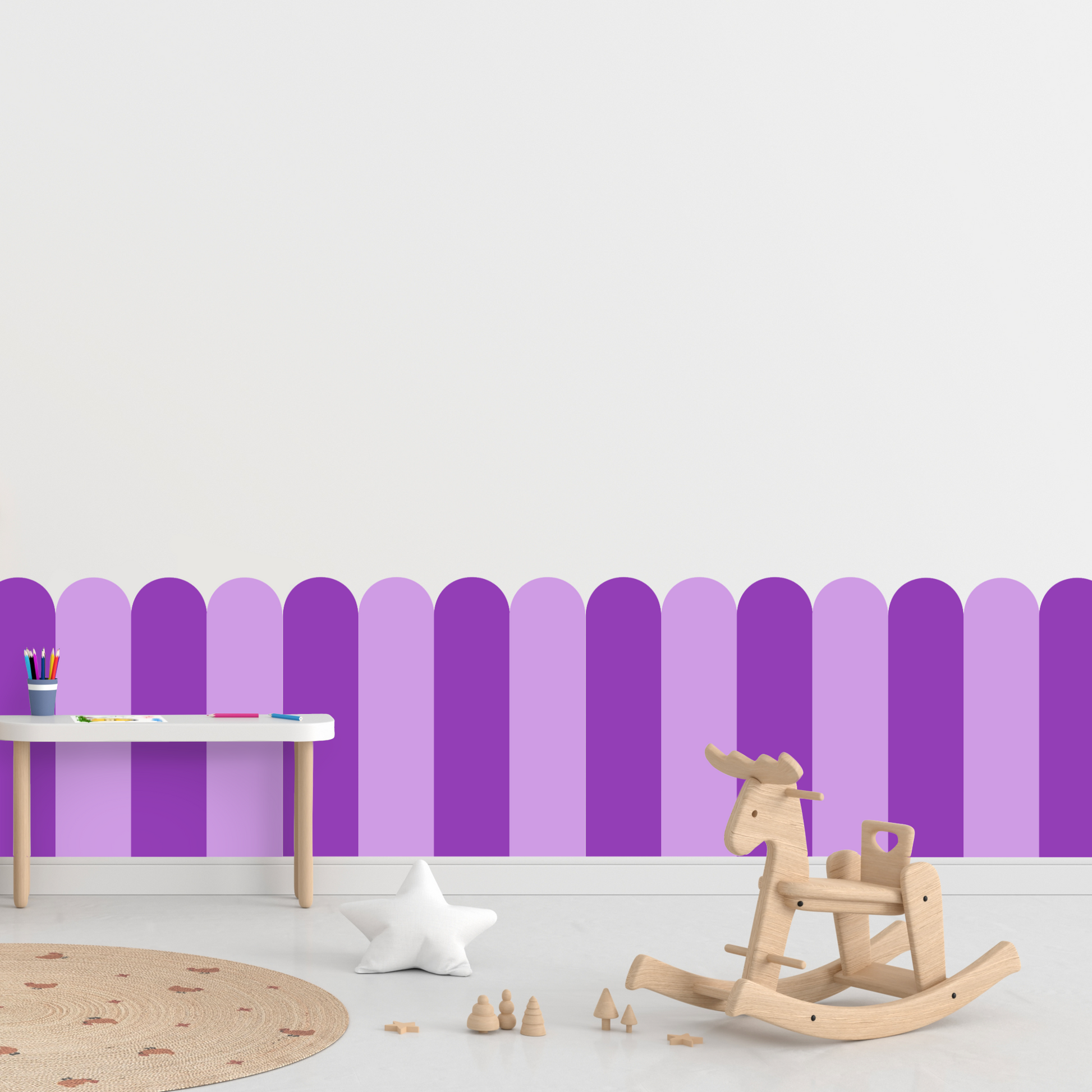 Add a modern and stylish touch to your space with our Self-Adhesive Textile Wallpaper – Arch – Purple Shades! 💜 Its simple yet elegant design makes it perfect for kids’ rooms, playrooms, or any area that needs a fresh and cozy atmosphere. The smooth arch pattern in harmonious purple tones creates a structured, balanced look that complements any interior.