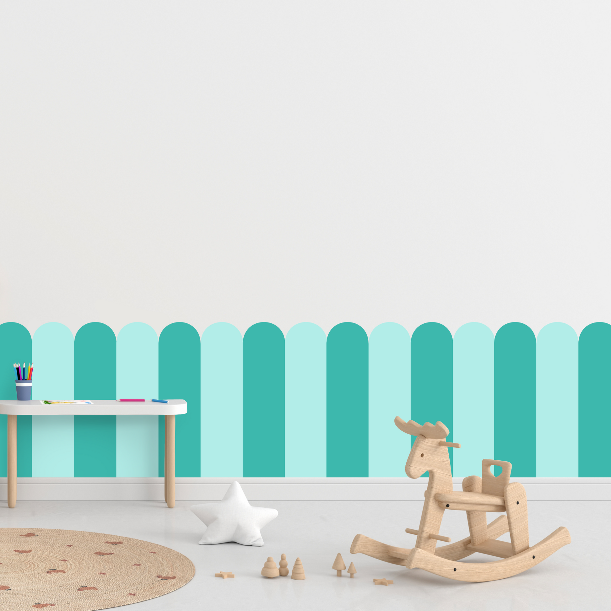 Add a modern and stylish touch to your space with our Self-Adhesive Textile Wallpaper – Arch – Turquoise Shades! 🩵 Its simple yet elegant design makes it perfect for kids’ rooms, playrooms, or any area that needs a fresh and cozy atmosphere. The smooth arch pattern in harmonious turquoise tones creates a structured, balanced look that complements any interior.