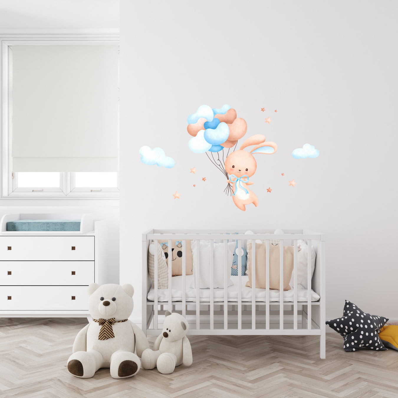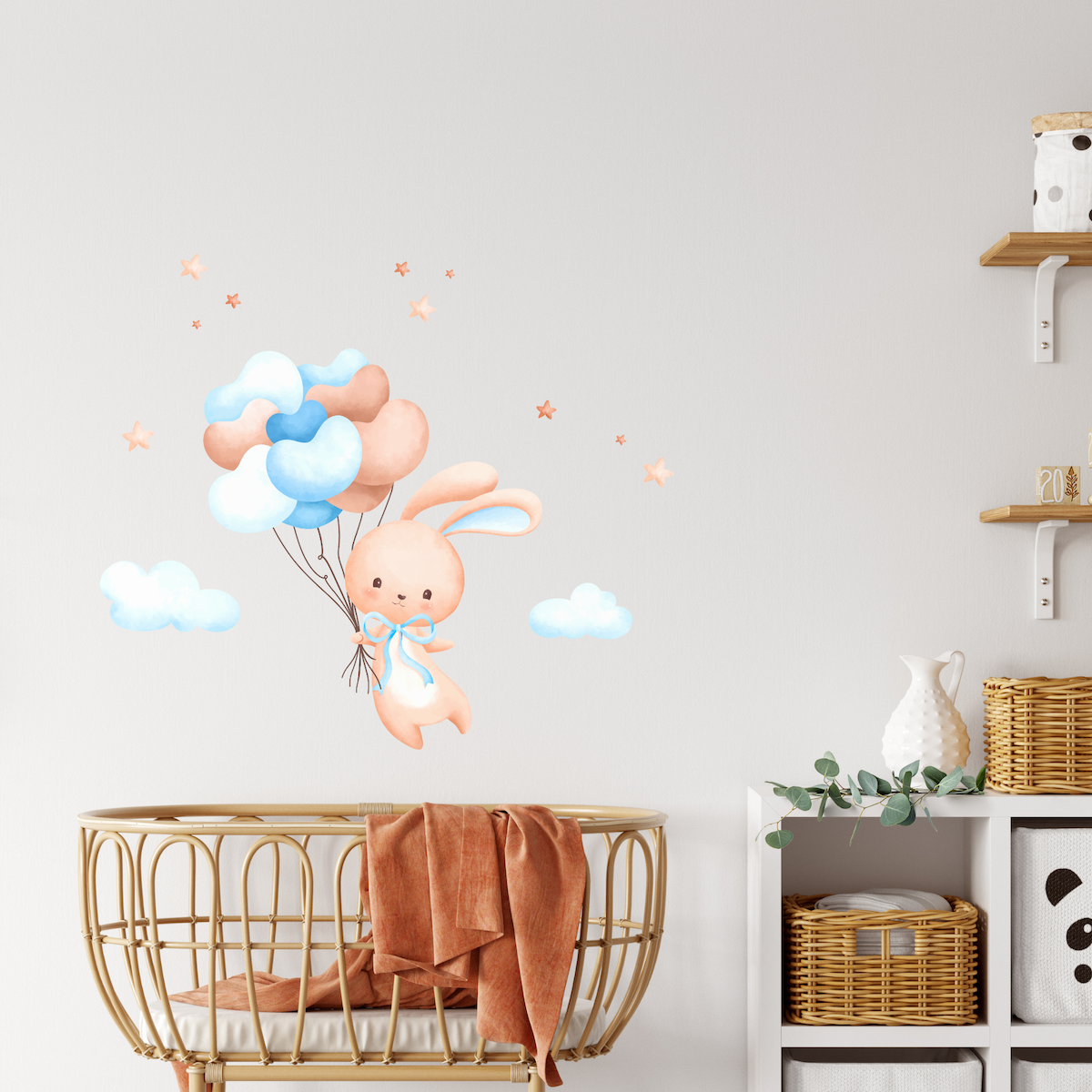 Textile Wall Sticker “Bunny with Balloons – Blue”