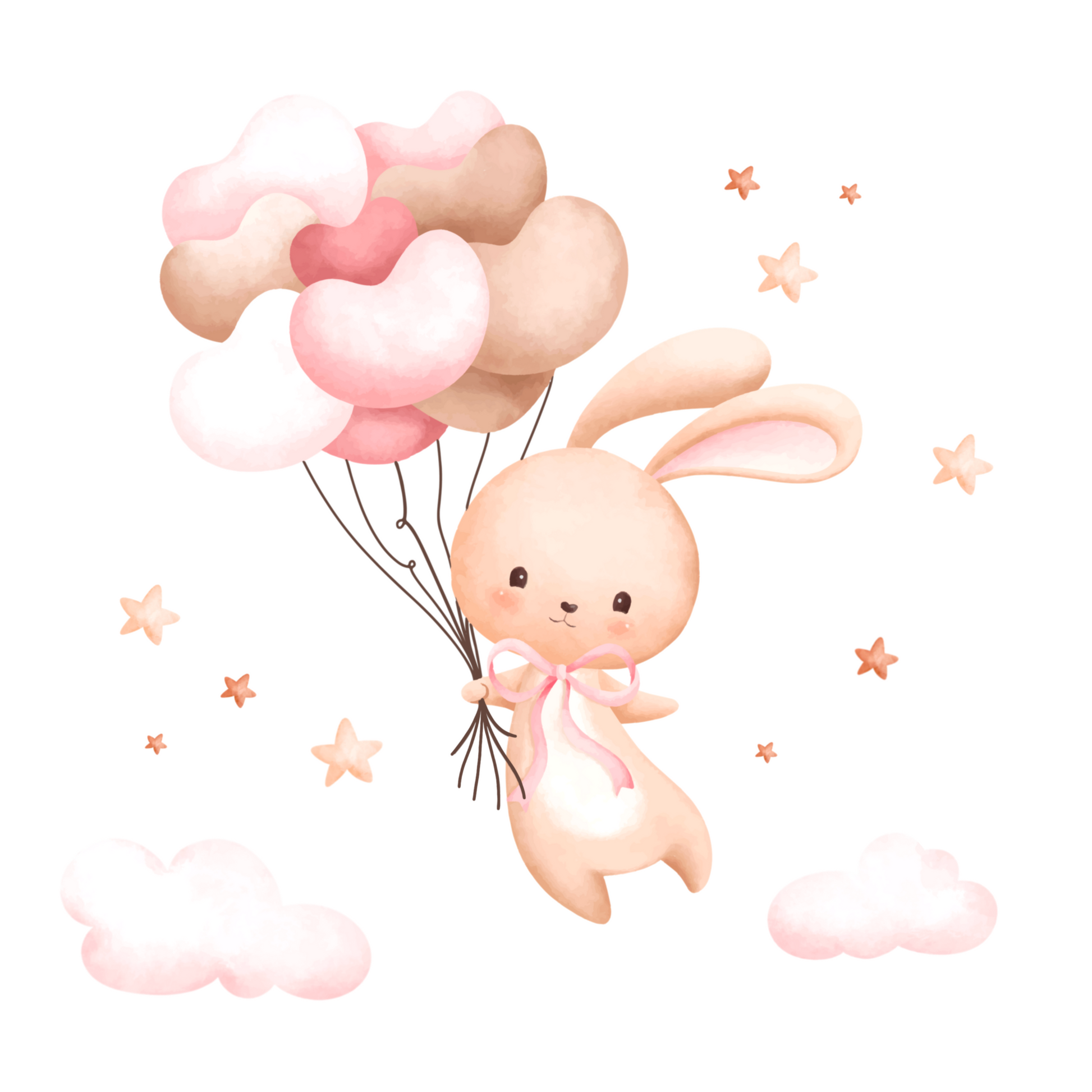 Let your little one’s room blossom with sweetness thanks to our Textile Wall Sticker – “Bunny with Balloons – Pink”. This adorable design features a bunny holding a bunch of pastel pink and beige balloons, floating among fluffy clouds and tiny stars.