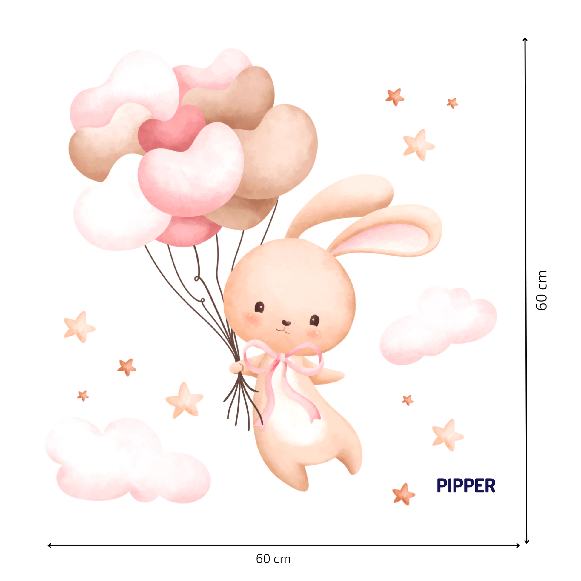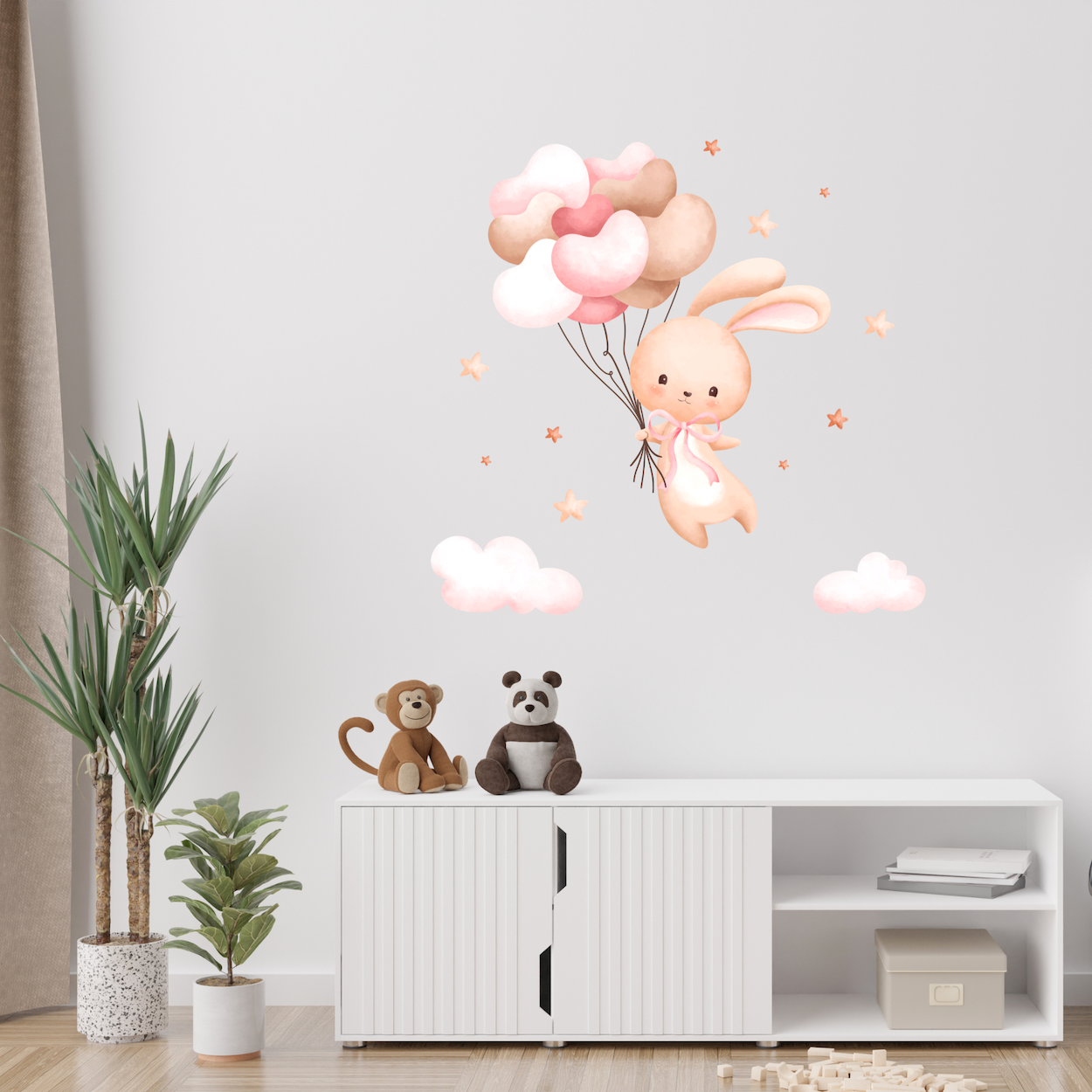 Textile Wall Sticker “Bunny with Balloons – Pink”