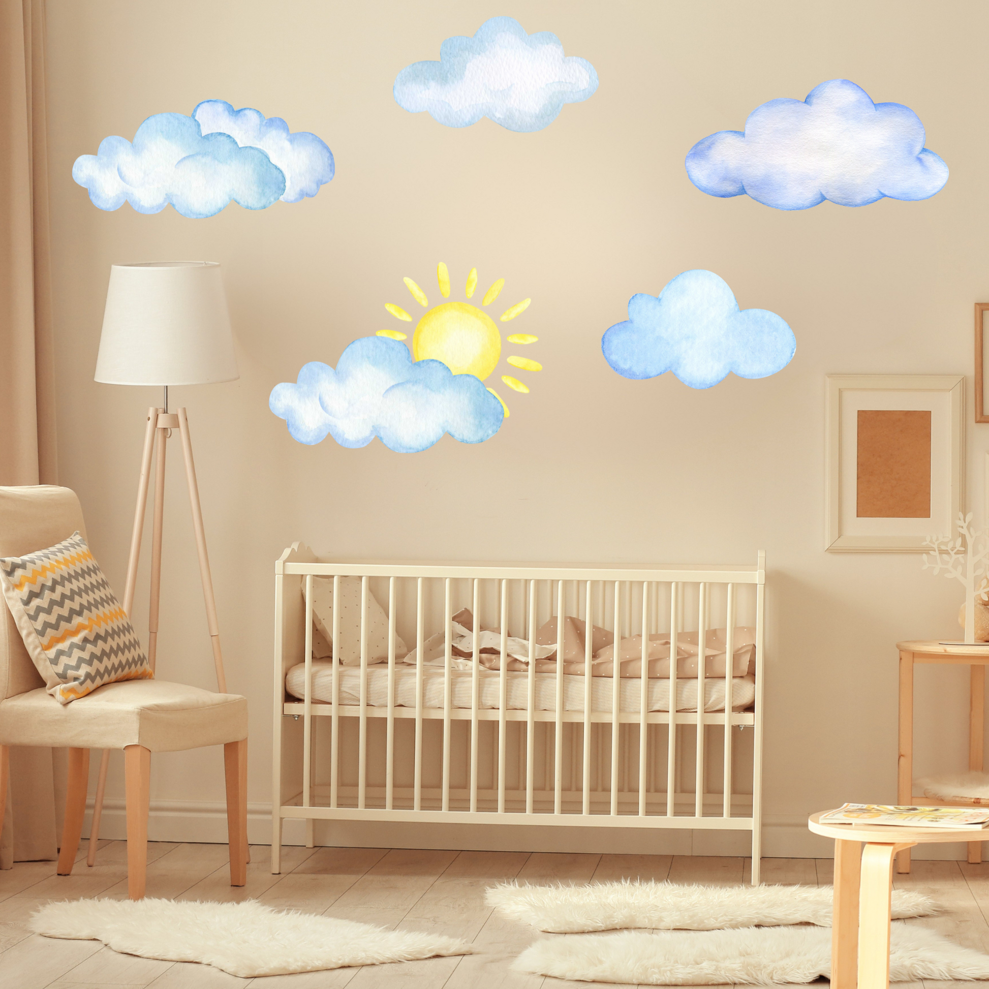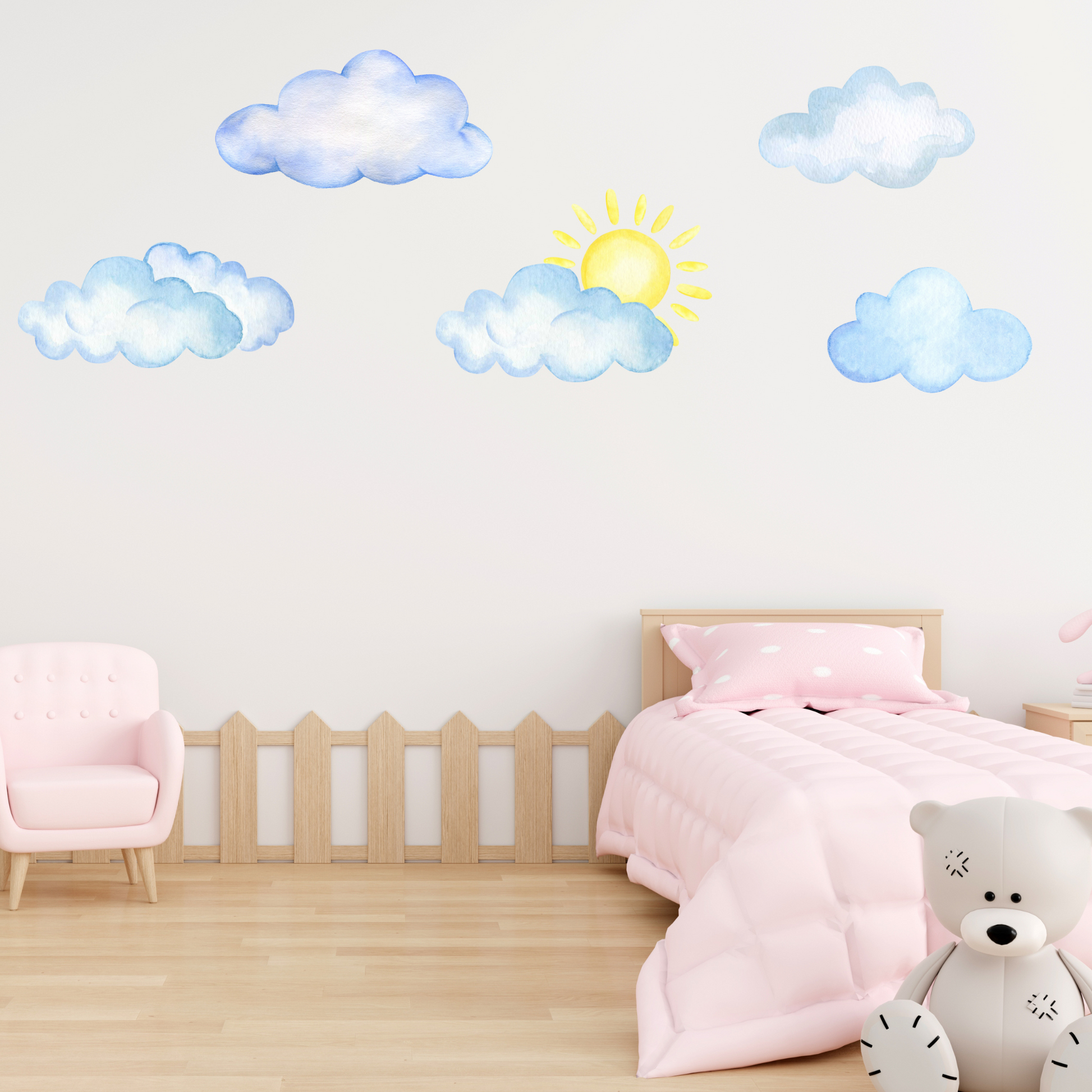 Float into a world of calm with our Textile Wall Sticker – “Clouds”! This gentle watercolor set of soft clouds and a sun brings a touch of serenity and brightness to any space.