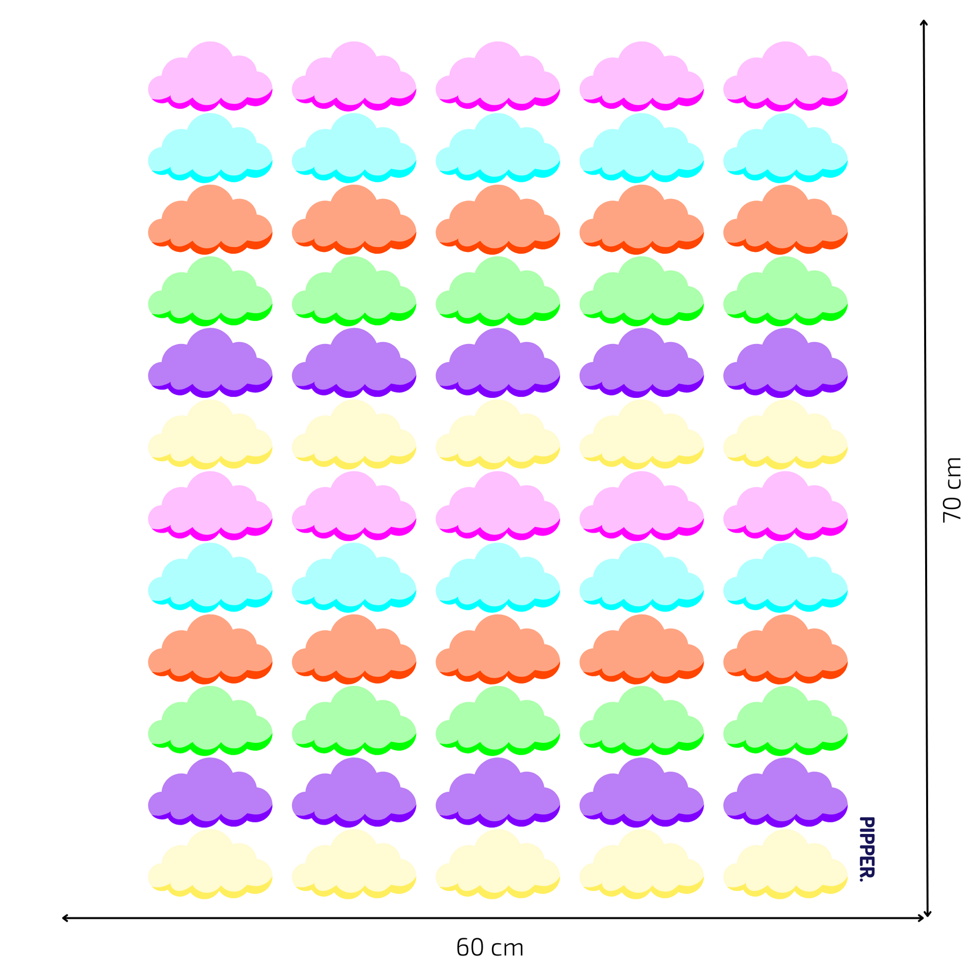 Fill your space with softness and creativity with our Textile Wall Sticker – "Clouds"! This set includes 60 colorful clouds, each as an individual sticker, allowing you to arrange them however you like on walls or other surfaces.