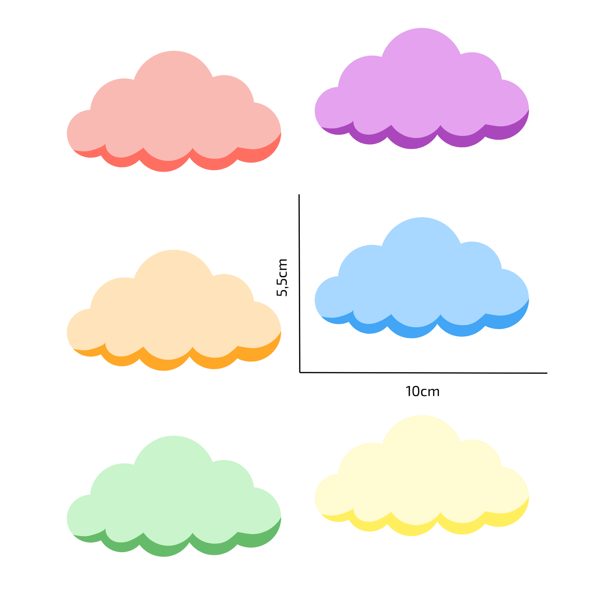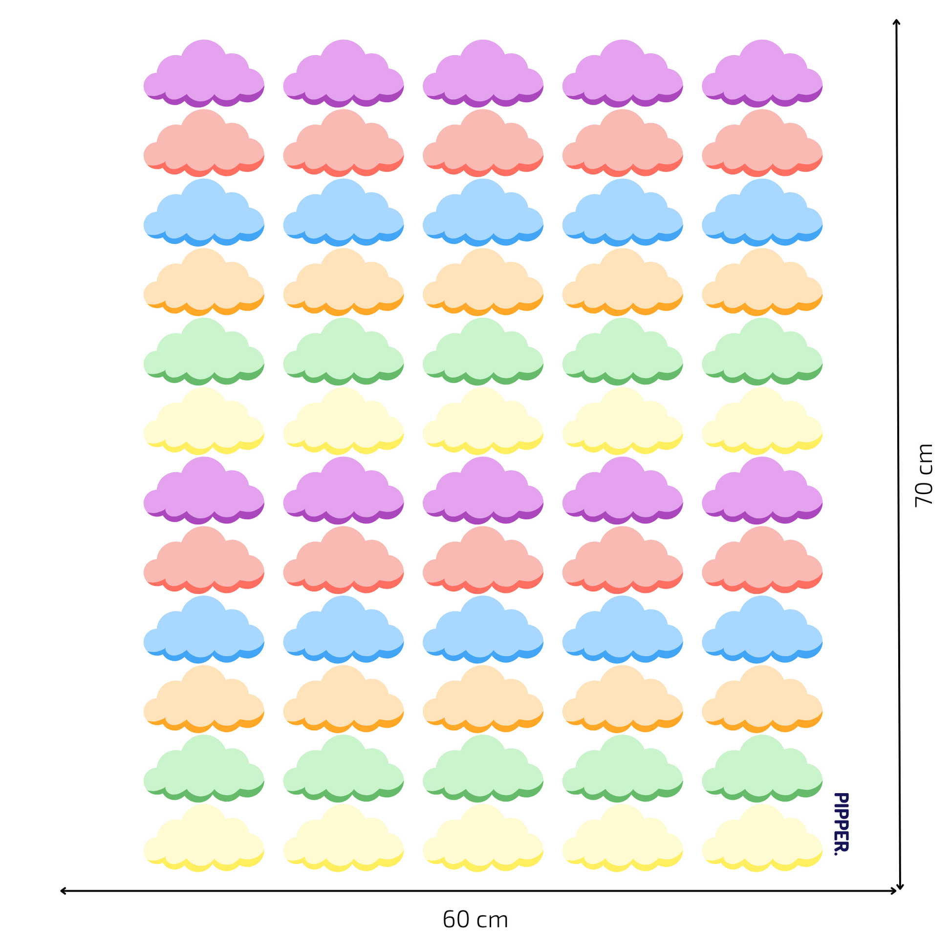 Fill your space with softness and creativity with our Textile Wall Sticker – "Clouds"! This set includes 60 colorful clouds, each as an individual sticker, allowing you to arrange them however you like on walls or other surfaces.