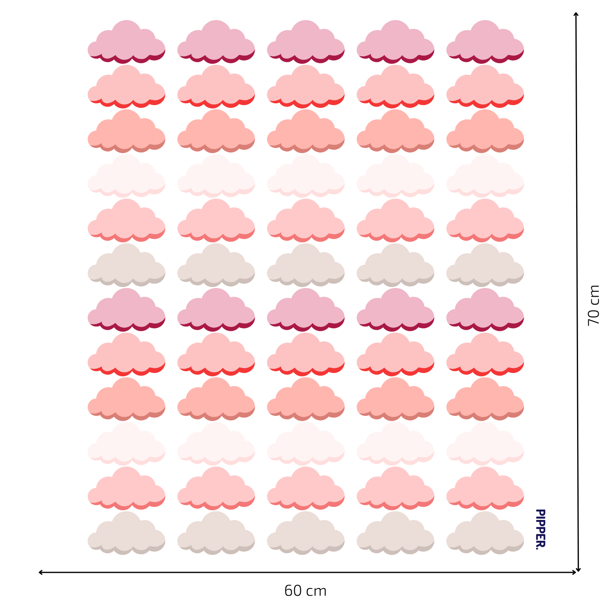 Fill your space with softness and creativity with our Textile Wall Sticker – "Clouds"! This set includes 60 colorful clouds, each as an individual sticker, allowing you to arrange them however you like on walls or other surfaces.