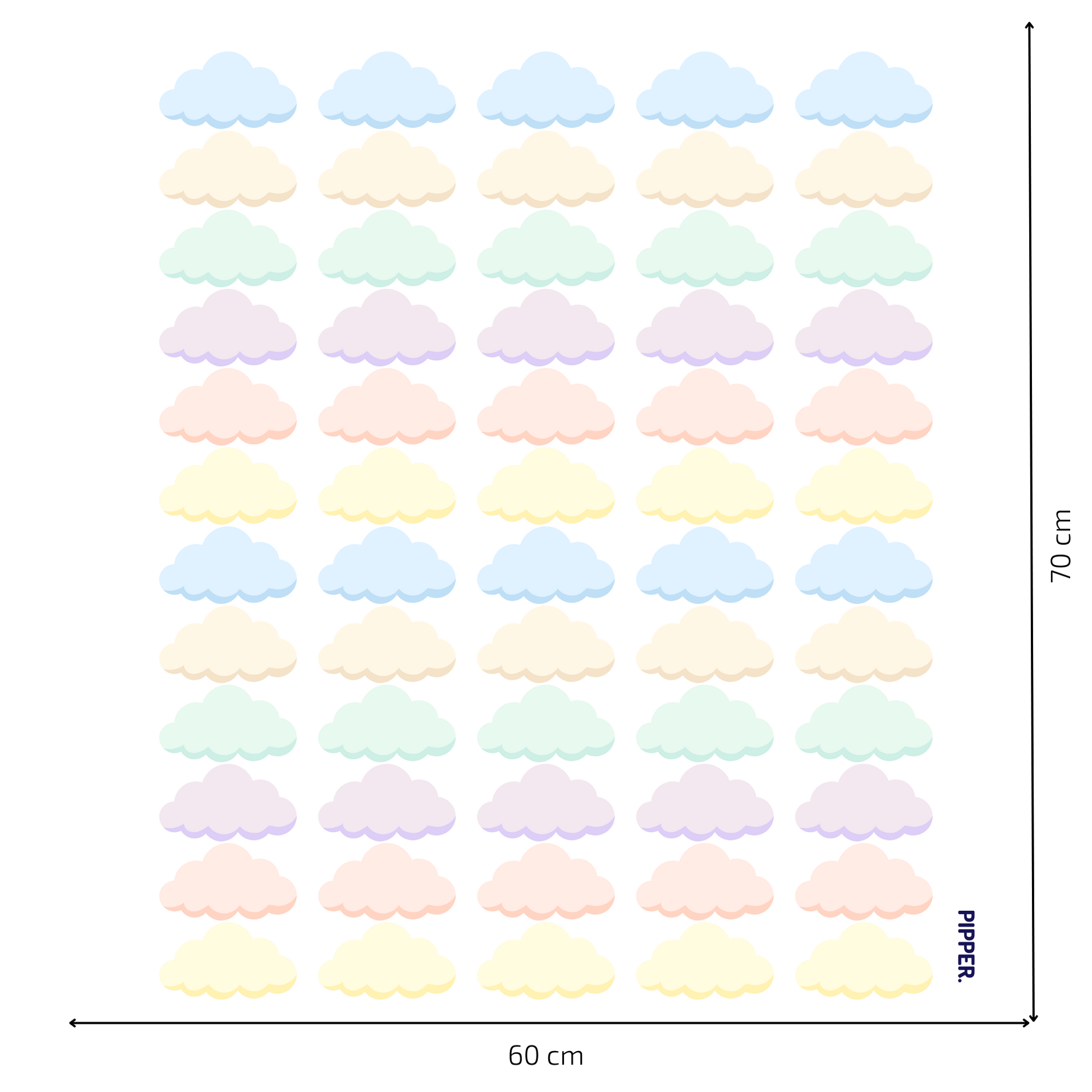 Fill your space with softness and creativity with our Textile Wall Sticker – "Clouds"! This set includes 60 colorful clouds, each as an individual sticker, allowing you to arrange them however you like on walls or other surfaces.