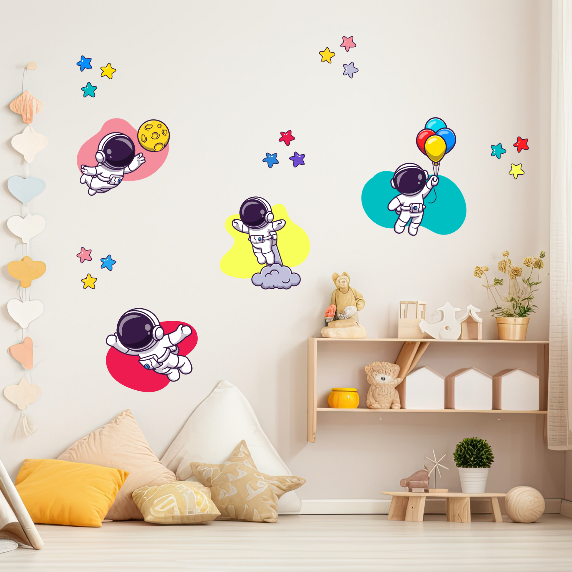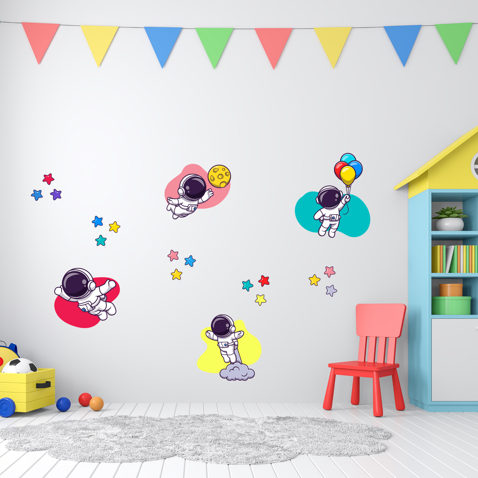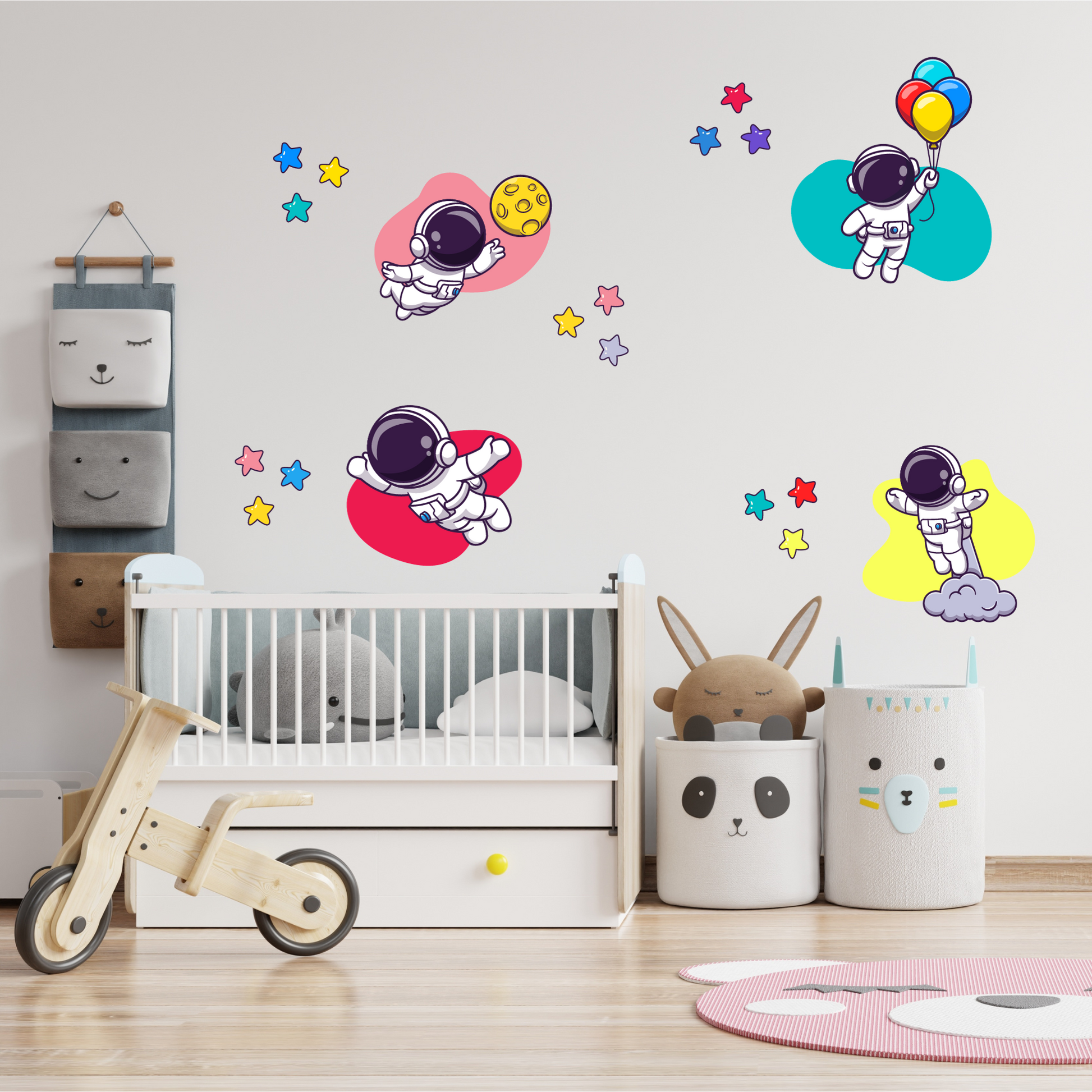Let your imagination soar with our Textile Wall Sticker – “Colorful Astronauts”! This playful set features cute little astronauts in bold colors, floating through space with balloons, stars, and even the moon. Each character brings joy and adventure to your room - perfect for a nursery, playroom, or creative corner.