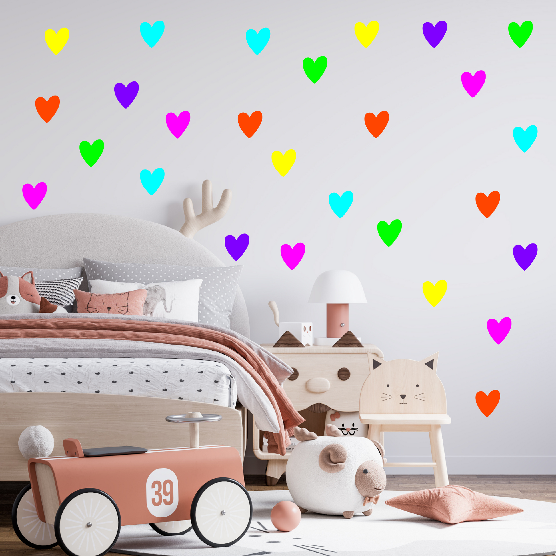 Fill your child’s room with love and warmth with our Colorful Hearts textile sticker! 🩷💛💙 This adorable set features a pattern of dark neon hearts, bringing a cozy and cheerful atmosphere to any space.