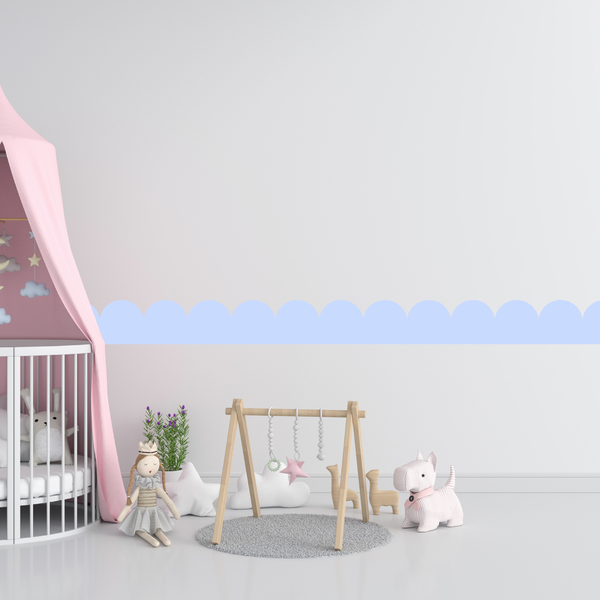 Textile Wall Sticker – Scalloped Arch Border - Light Blue