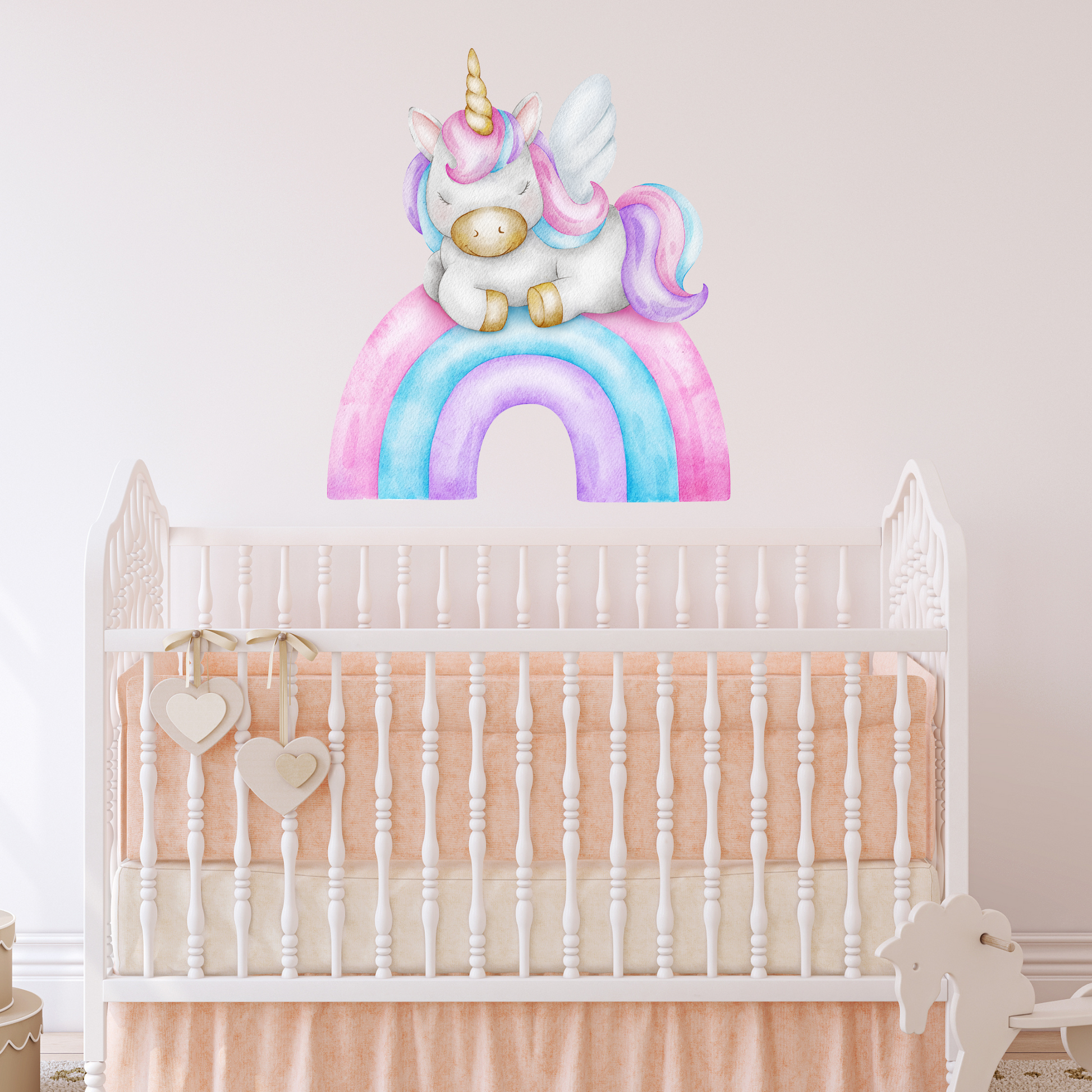 Perfect for nurseries, children’s bedrooms, or playrooms, this sticker adds a soft, dreamy atmosphere while being easy to apply and remove. Let the magic of rainbows and unicorns brighten your child’s world every day! ✨🌸