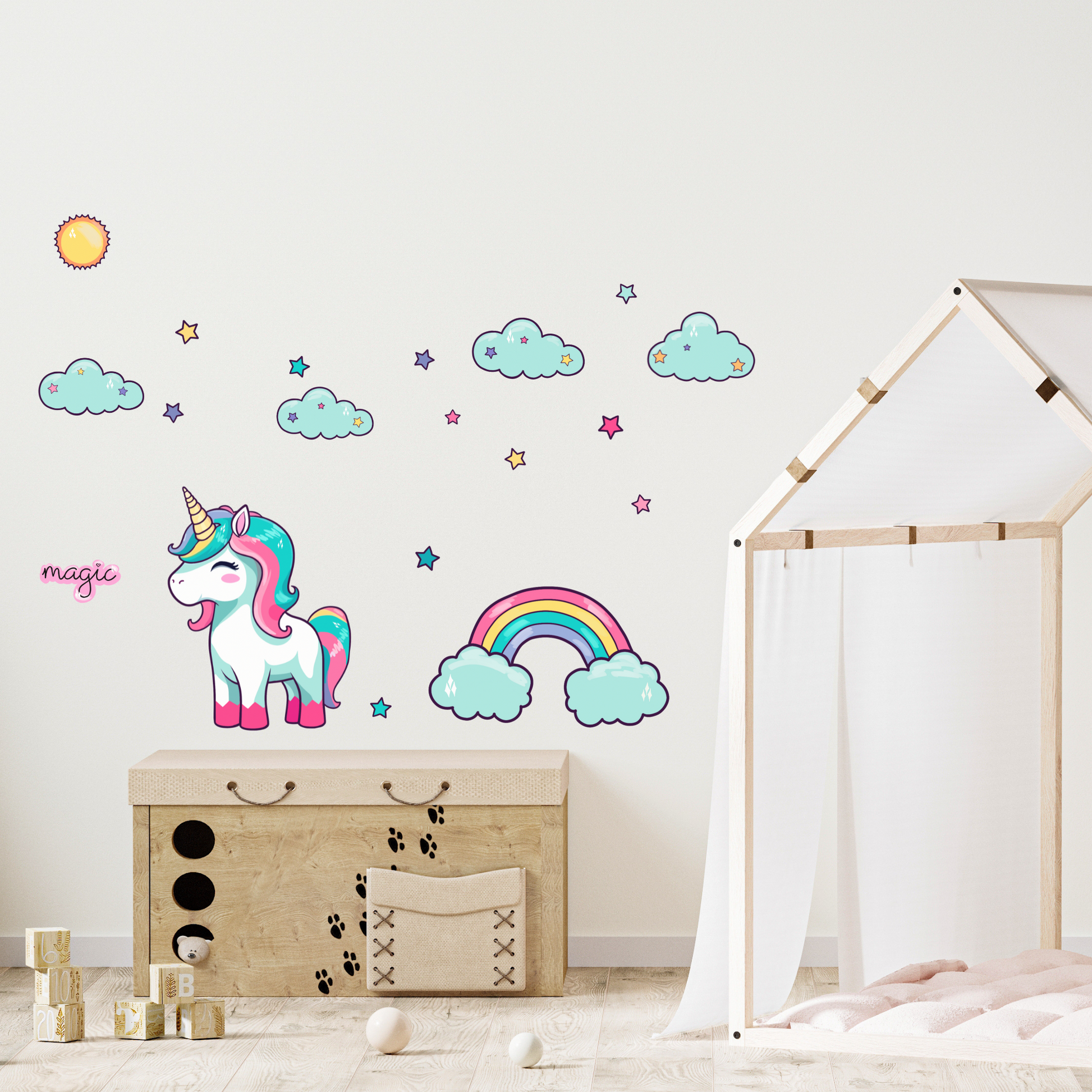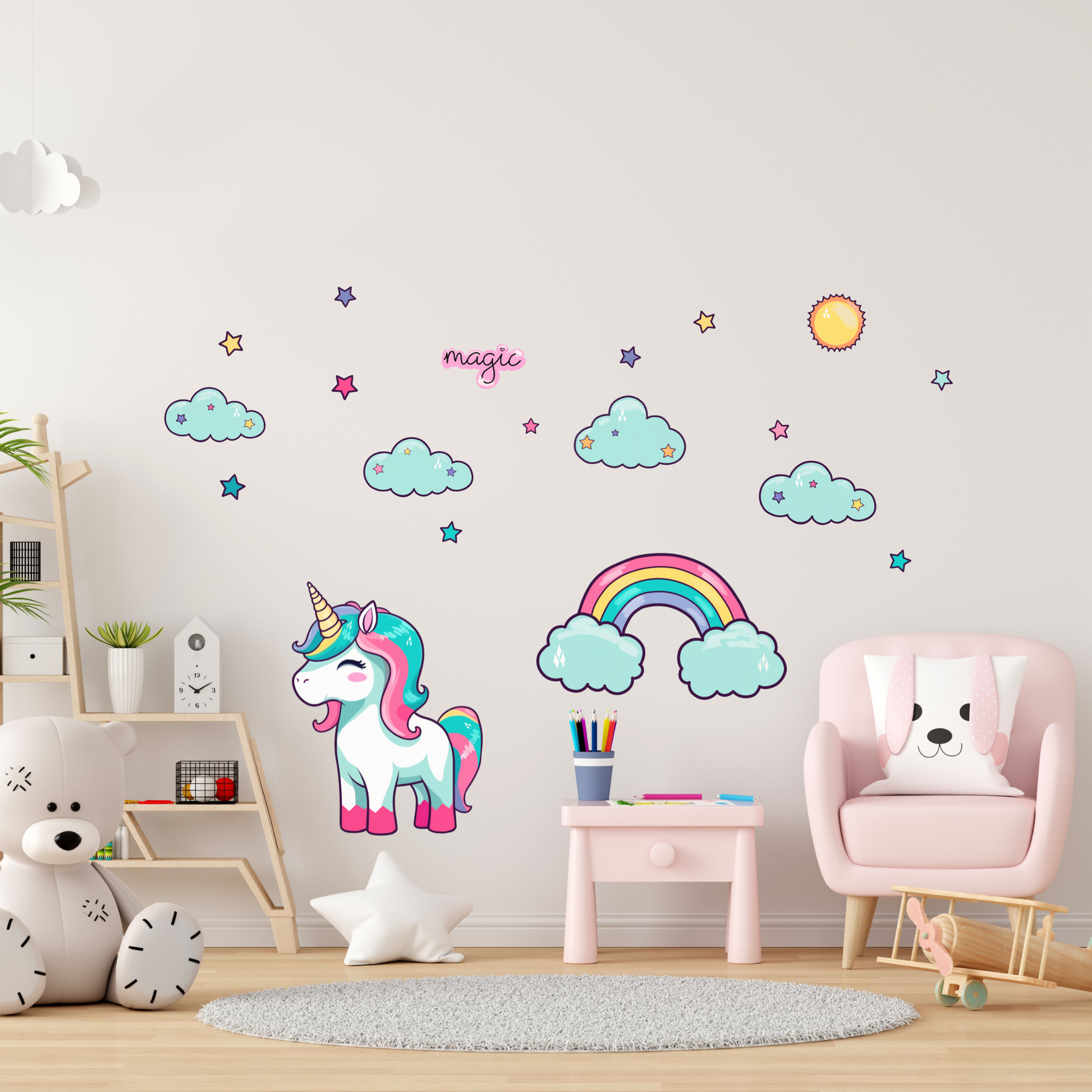 Let your child’s dreams take flight with our Textile Wall Sticker – “Unicorn with Clouds”. This enchanting set features a joyful unicorn, colorful clouds, sparkling stars, and a cheerful rainbow - a perfect combination for creating a dreamy, magical atmosphere in any child’s room.