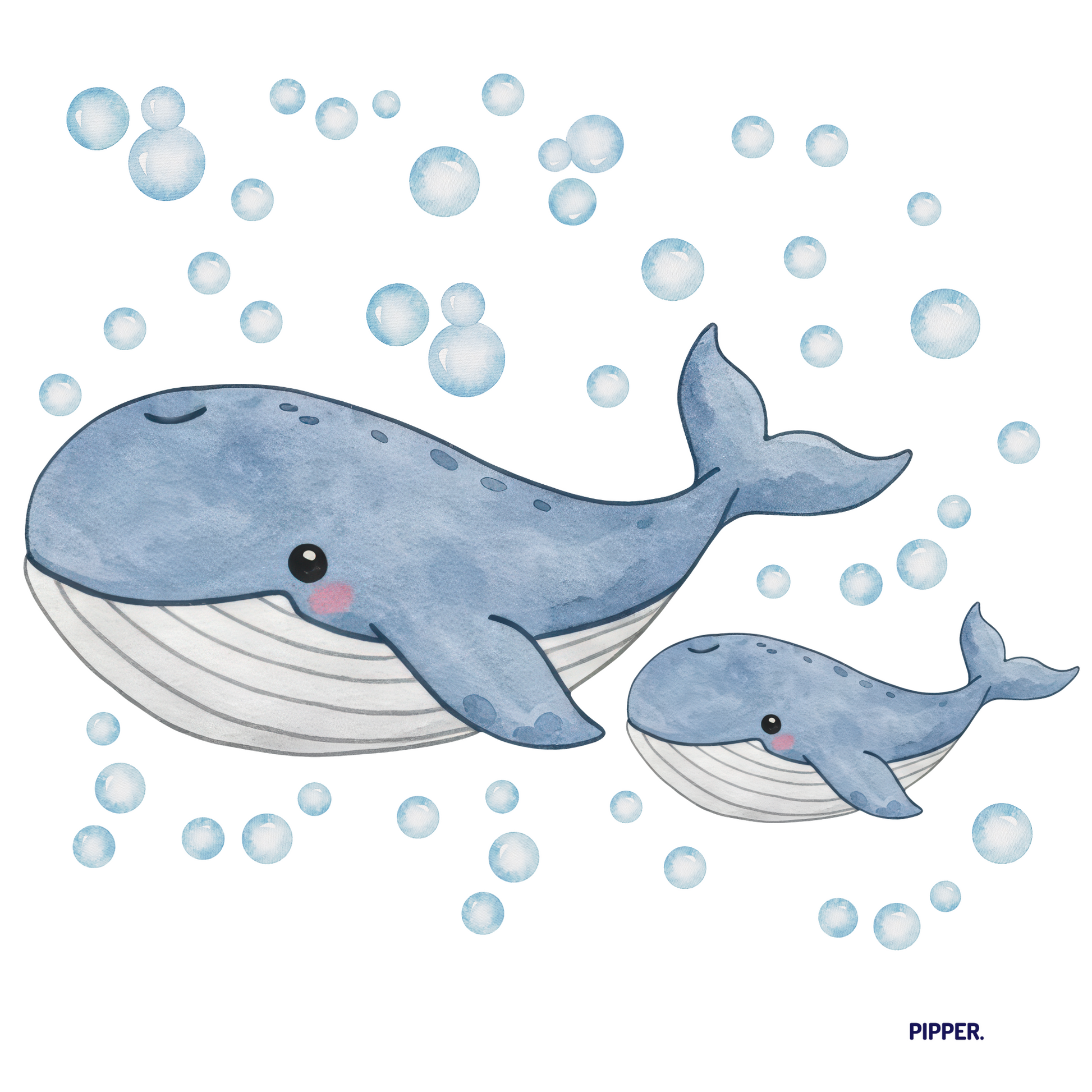 Dive into a world of wonder with our Textile Wall Sticker “Whales”! This adorable duo of smiling whales surrounded by bubbly waves brings a splash of calm and playfulness to your child’s space.