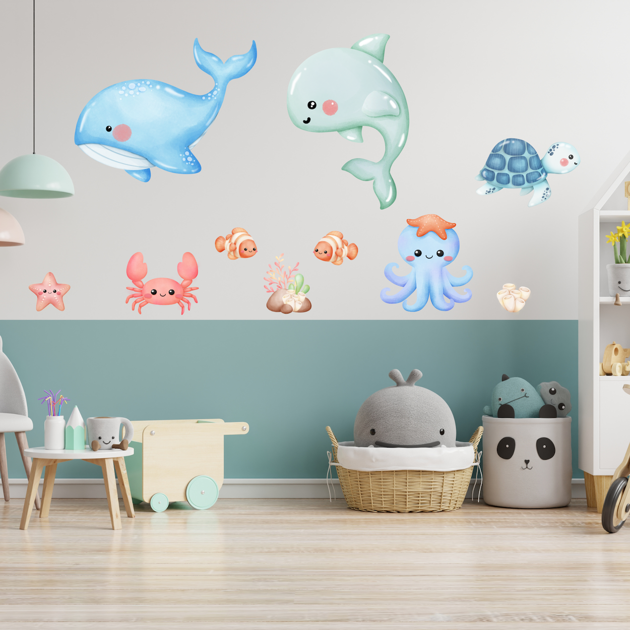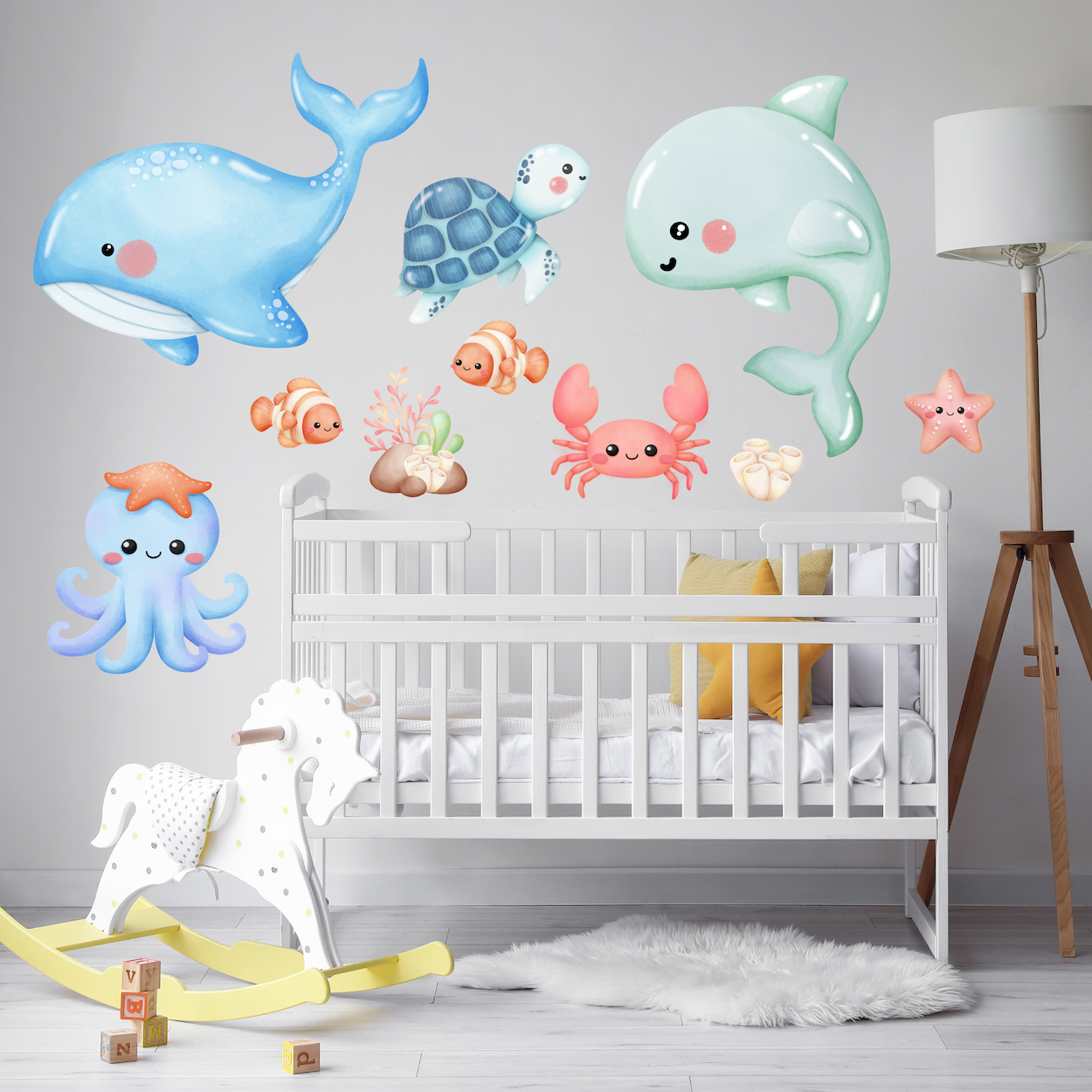 Perfect for nurseries, childrooms or playrooms, this sticker brings a peaceful and fun ocean vibe to your walls.